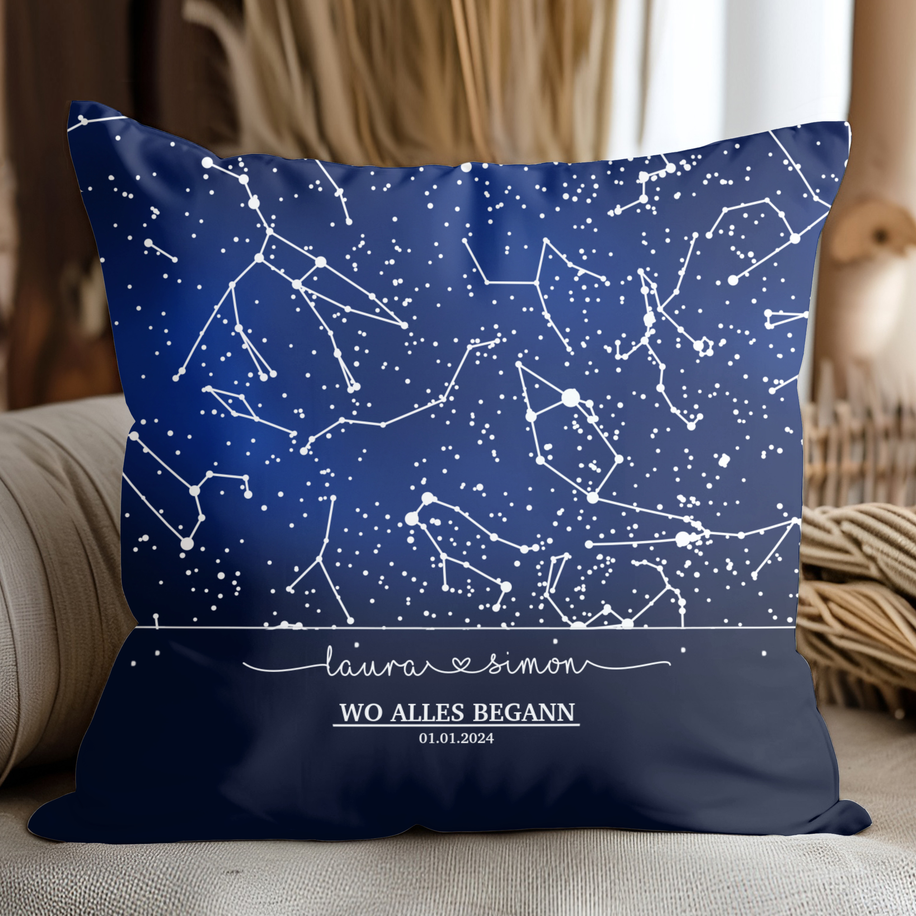 Unser Sternenhimmel - Personalisiertes Kuschelkissen für Paare mit Namen und Datum