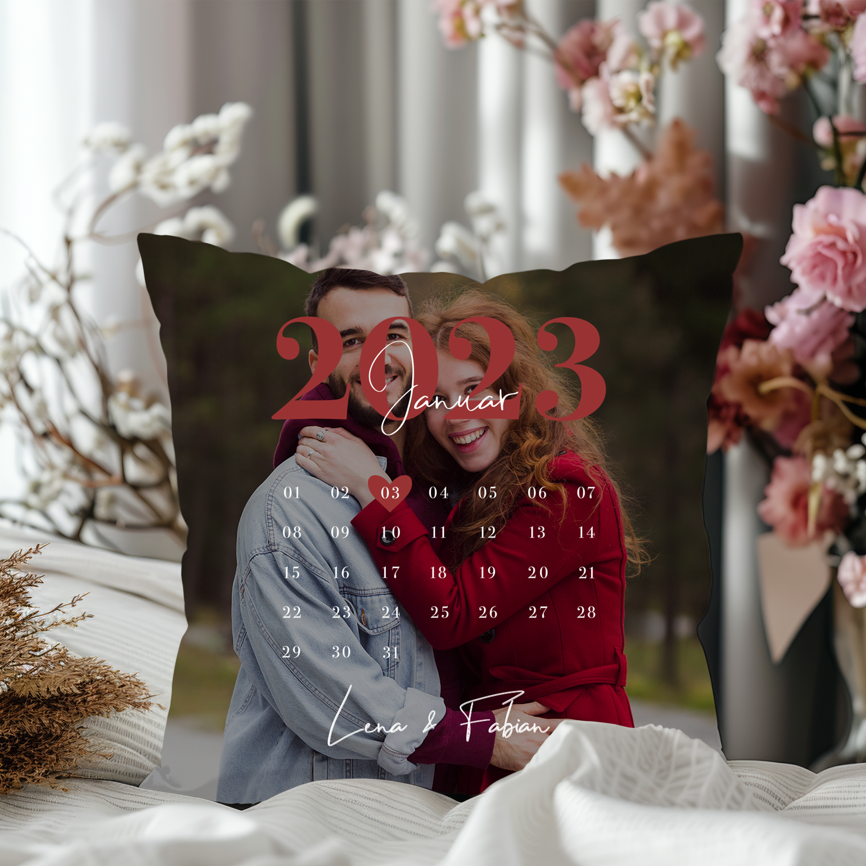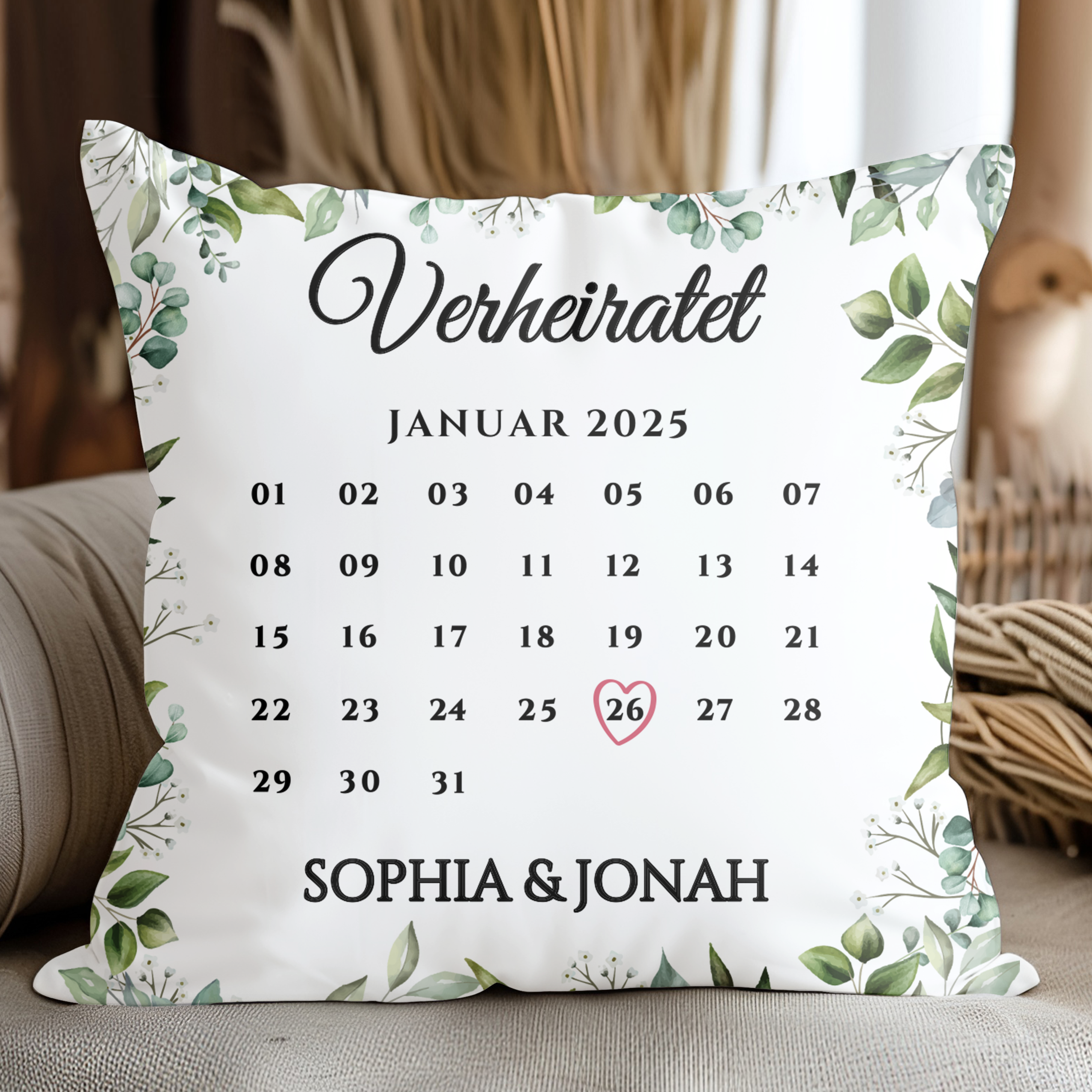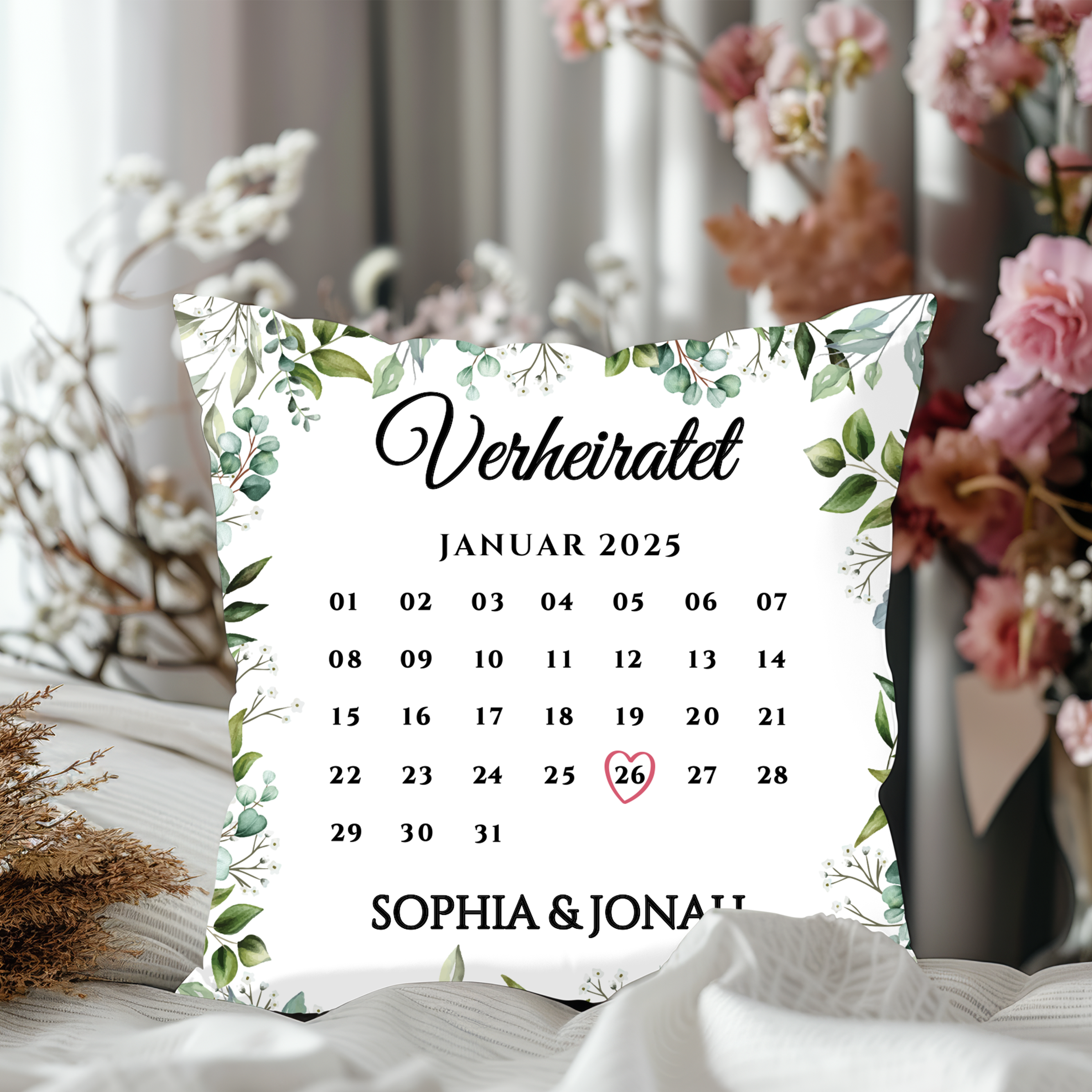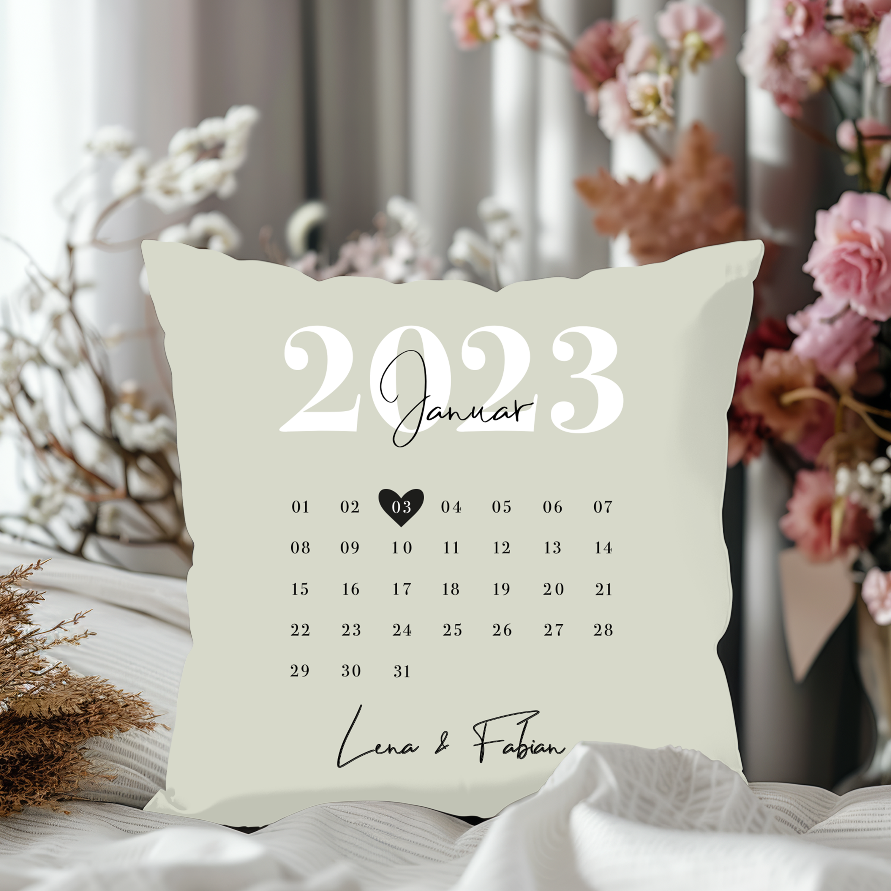Unser Hochzeitstag - Personalisiertes Kuschelkissen für Paare mit Kalenderblatt