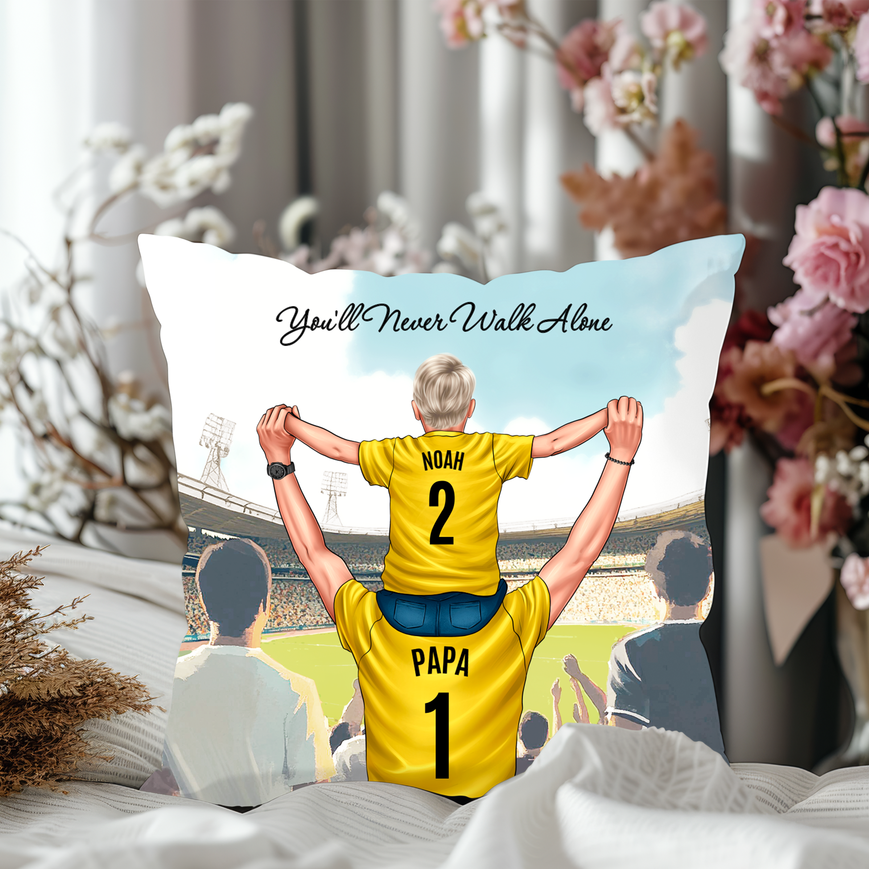Papa und Kind beim Fußball im Stadion - Personalisiertes Kuschelkissen