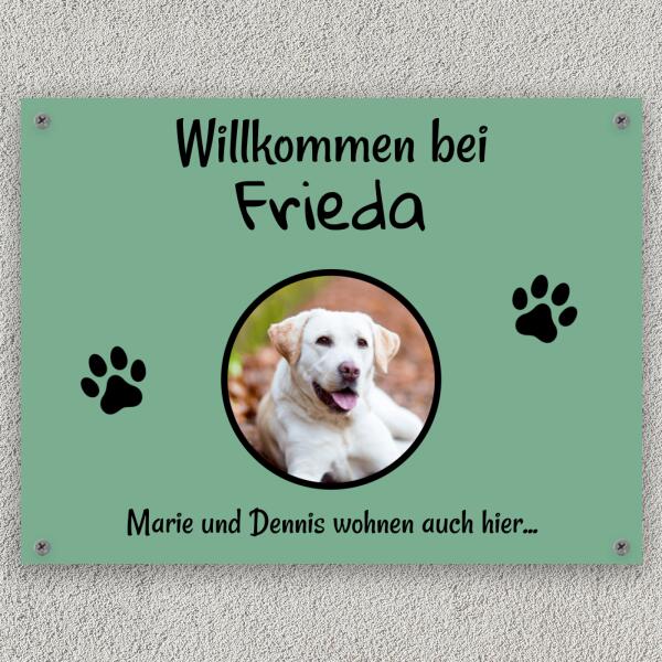 Zeige, wer mit dir in deinem Zuhause wohnt. Ob an der Haustür, der Wohnungstür, am Zaun oder auch im Flur - dein neues Türschild mit deinem Liebling sieht überall gut aus.