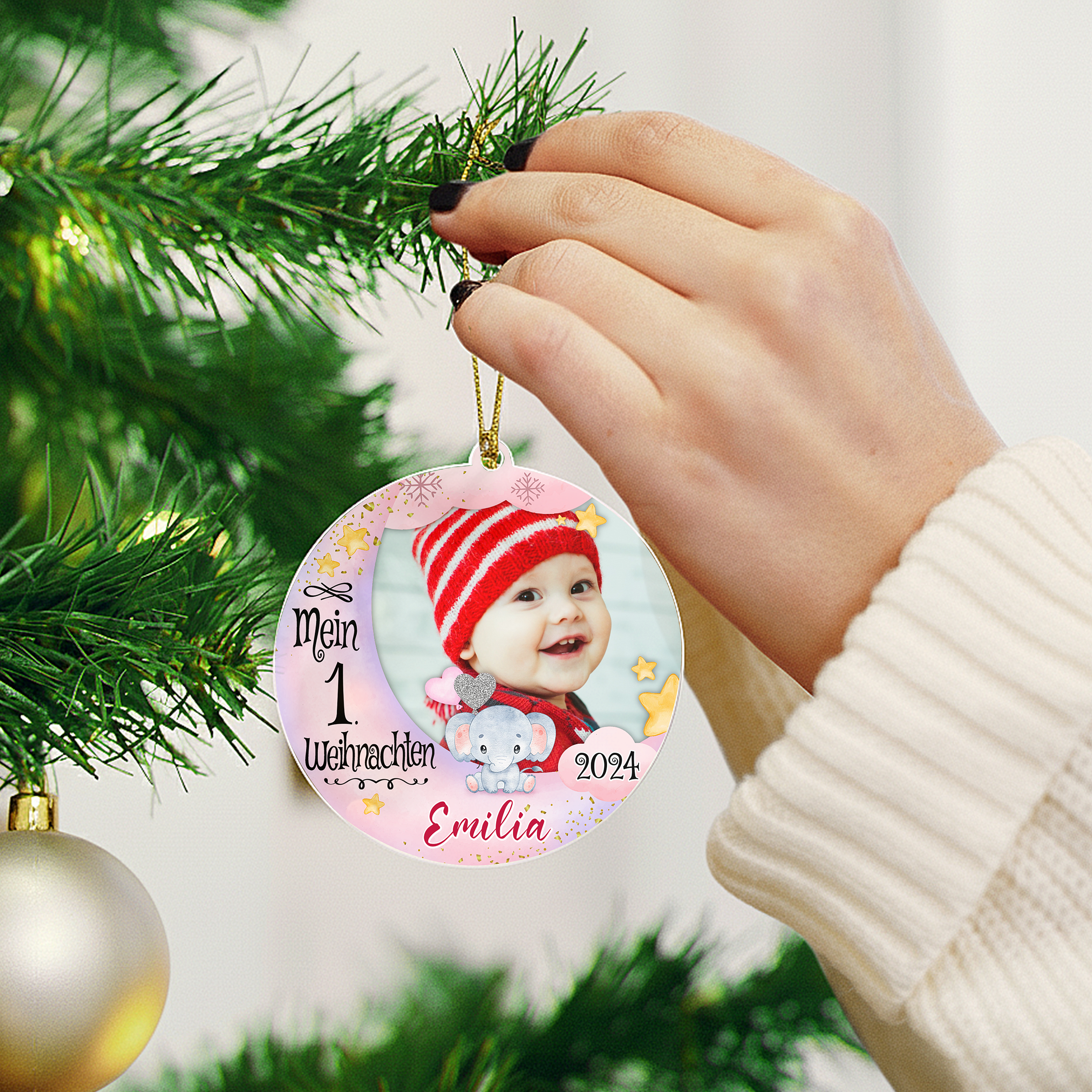 Babys erstes Weihnachten mit Foto - Personalisierter Christbaumschmuck