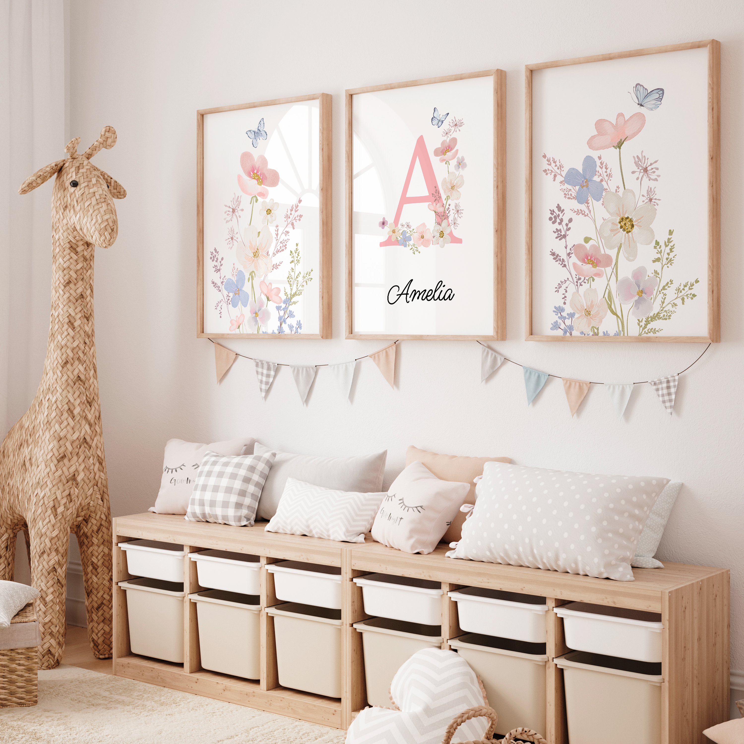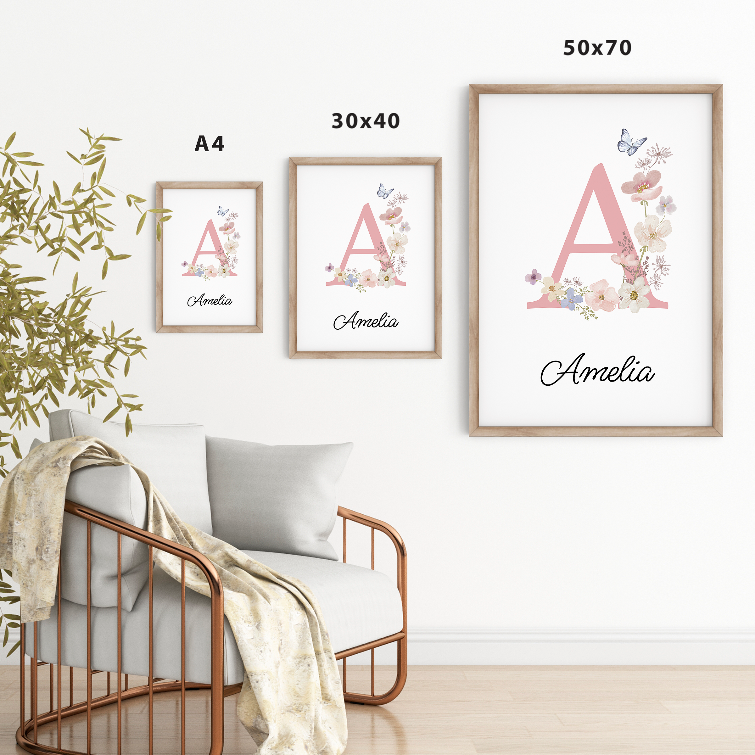 Blumenwiese - Personalisiertes Poster für Kinder zur Geburt mit Name