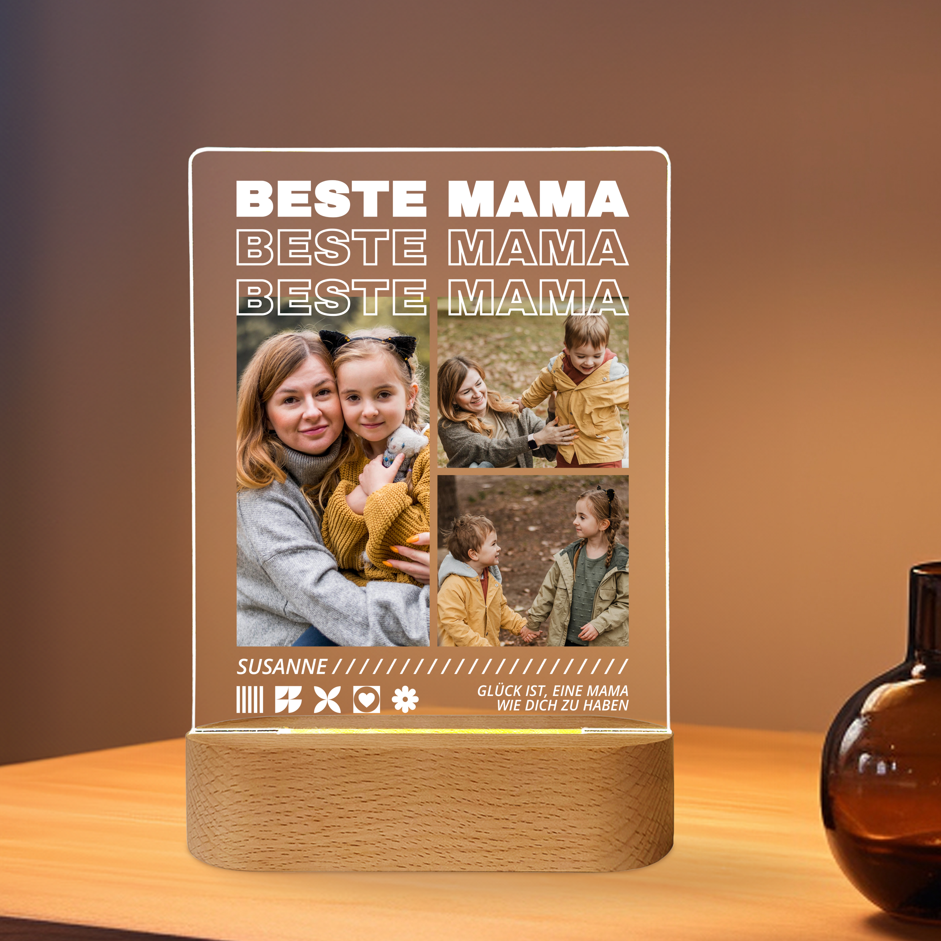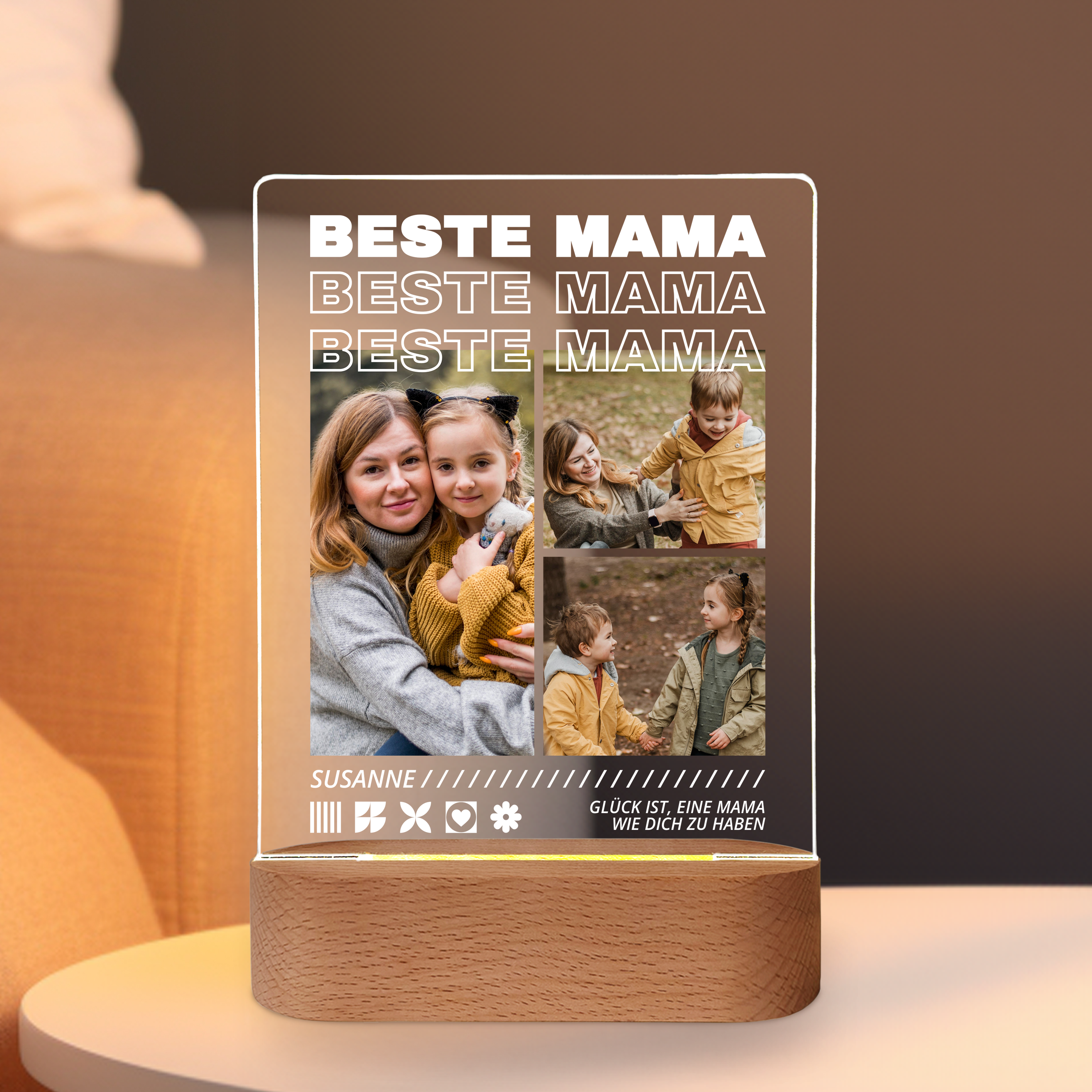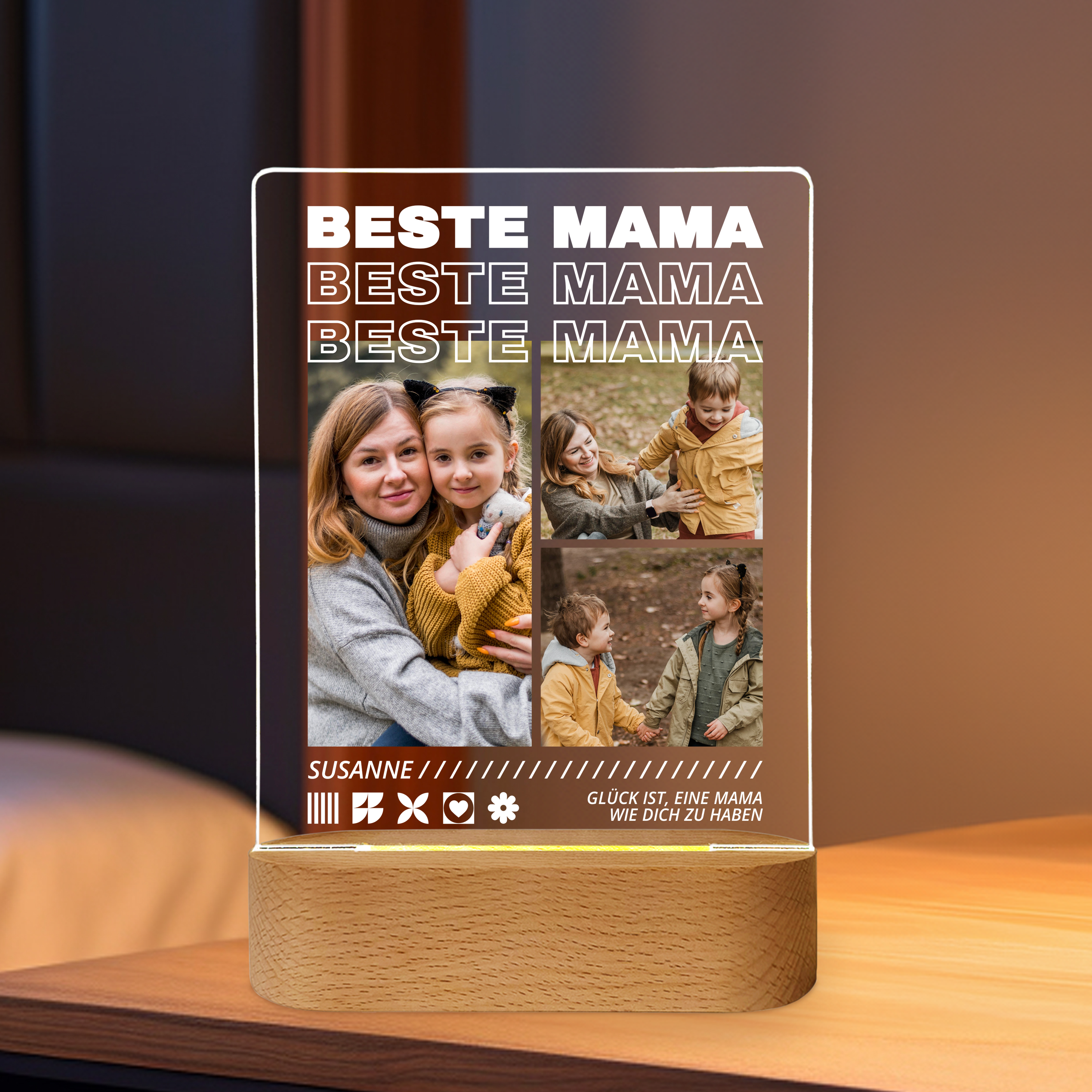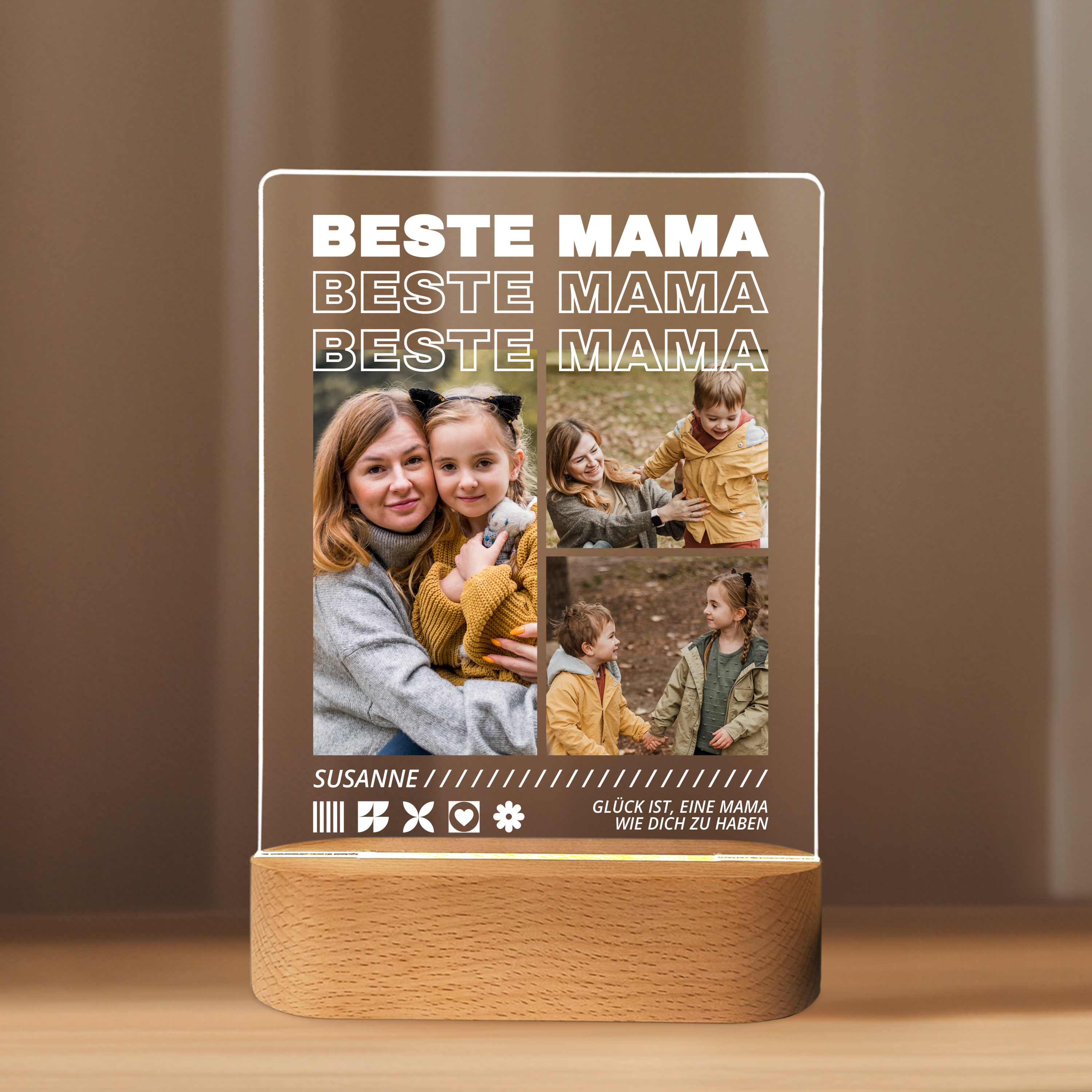 Beste Mama - Personalisiertes Acrylglas mit Licht für Mama