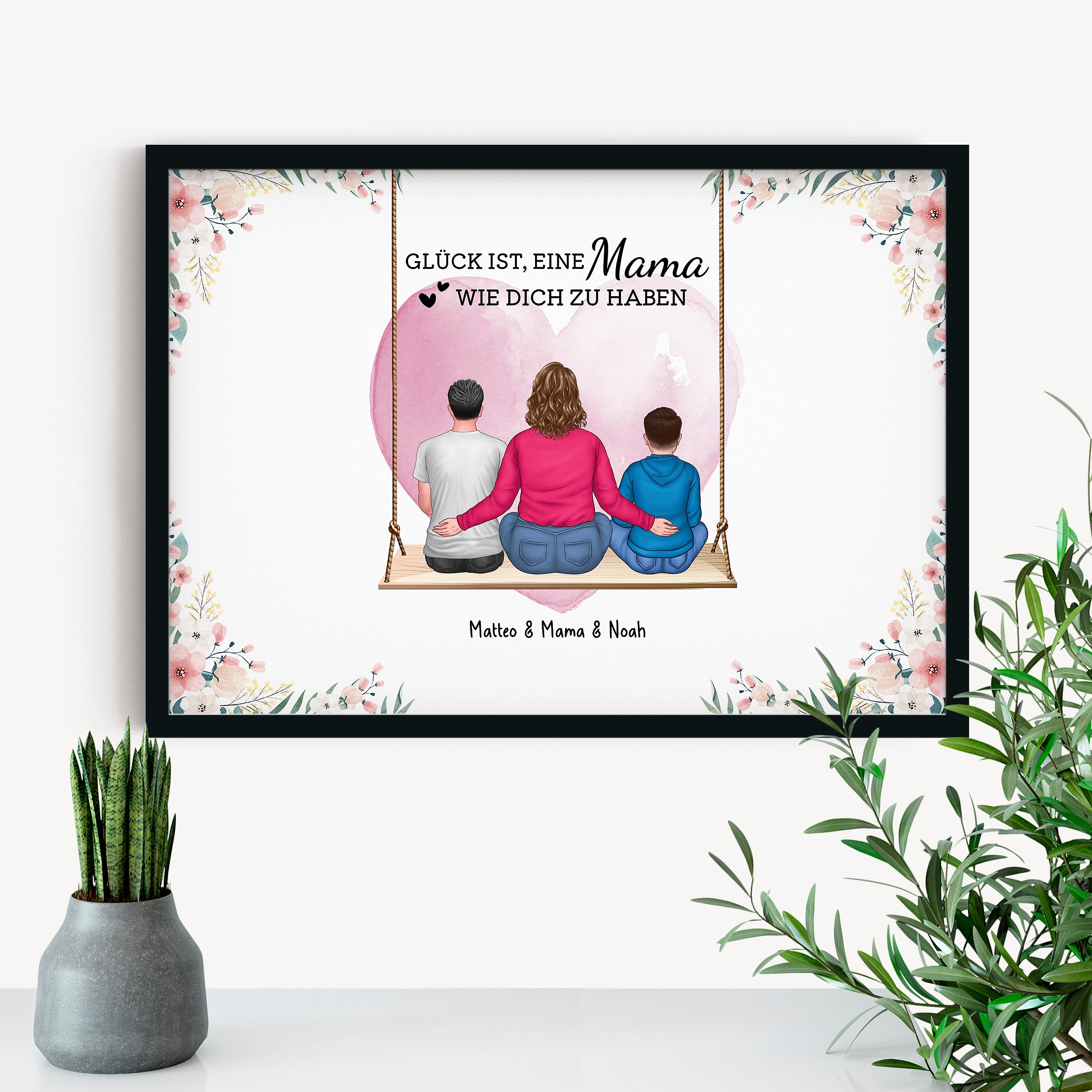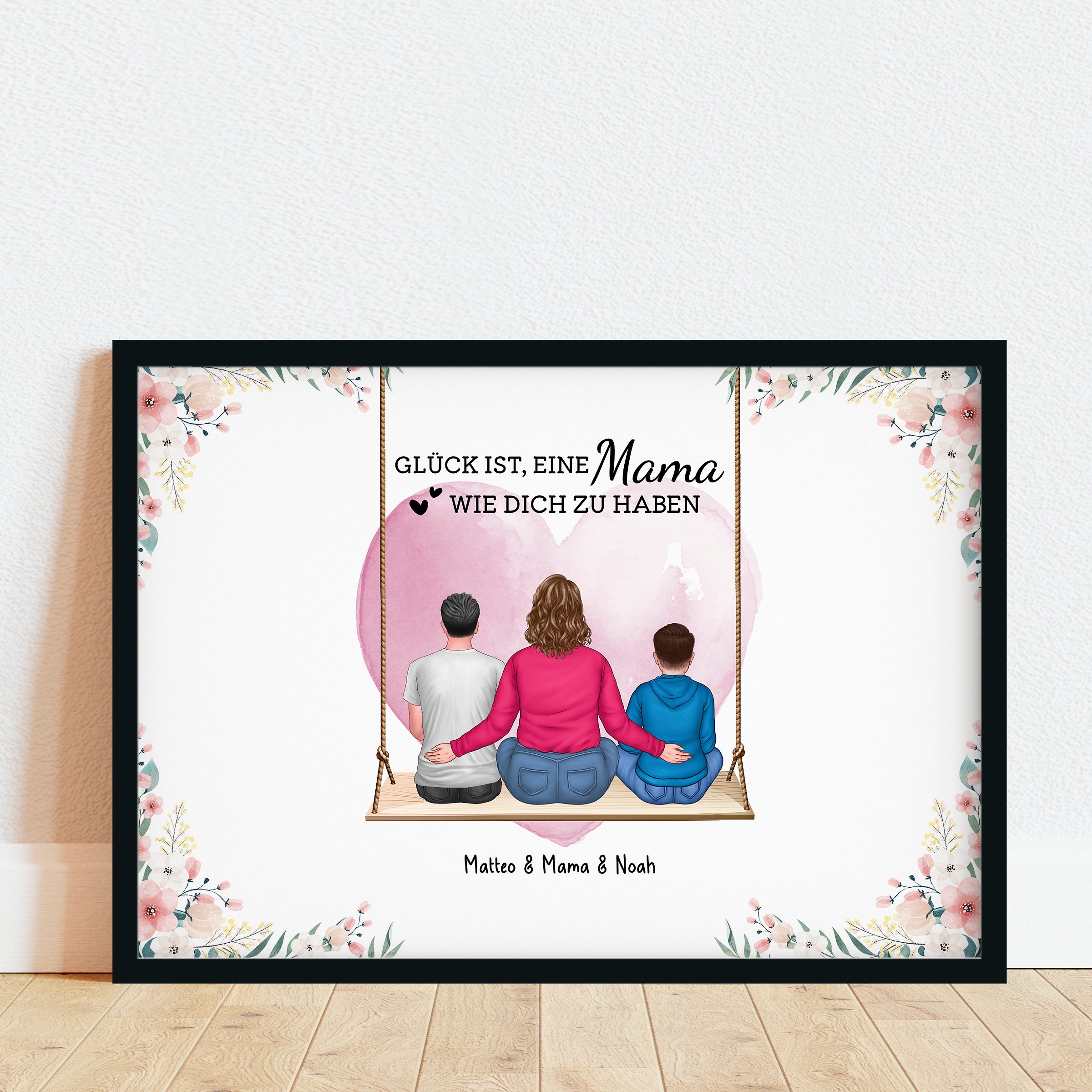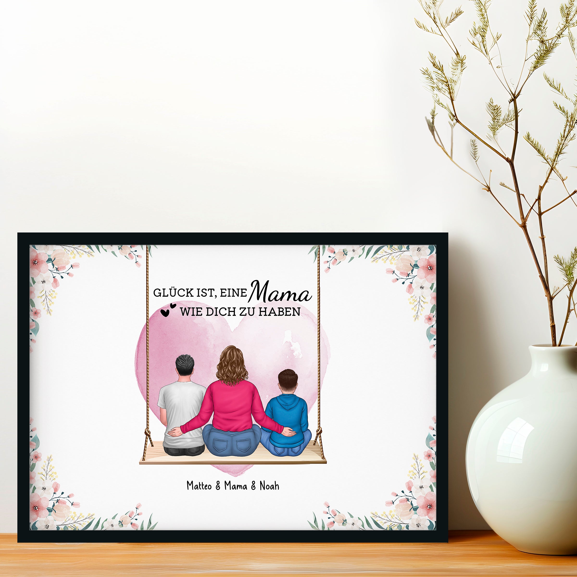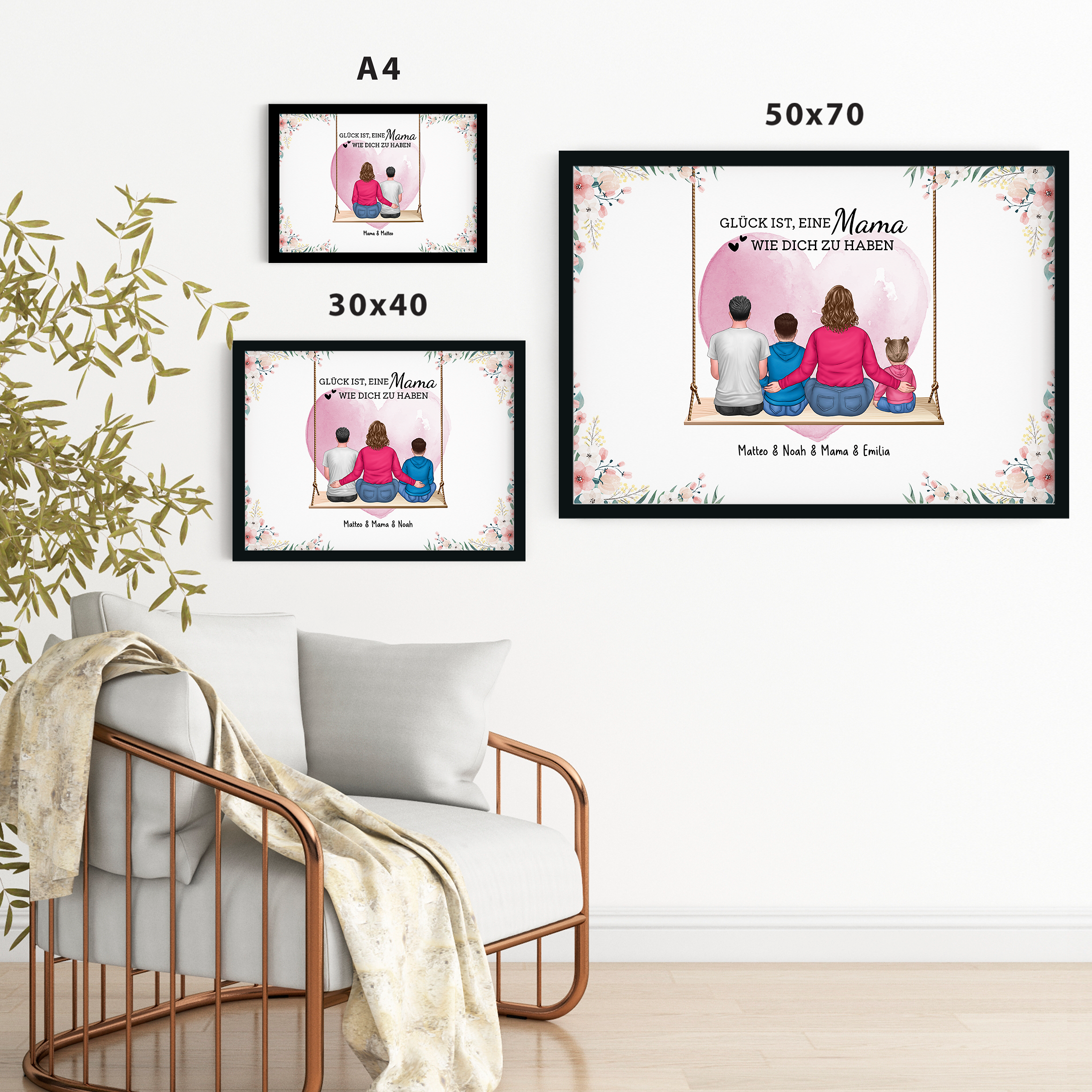 Mama & Kinder mit Herz - Personalisiertes Poster für Muttertag