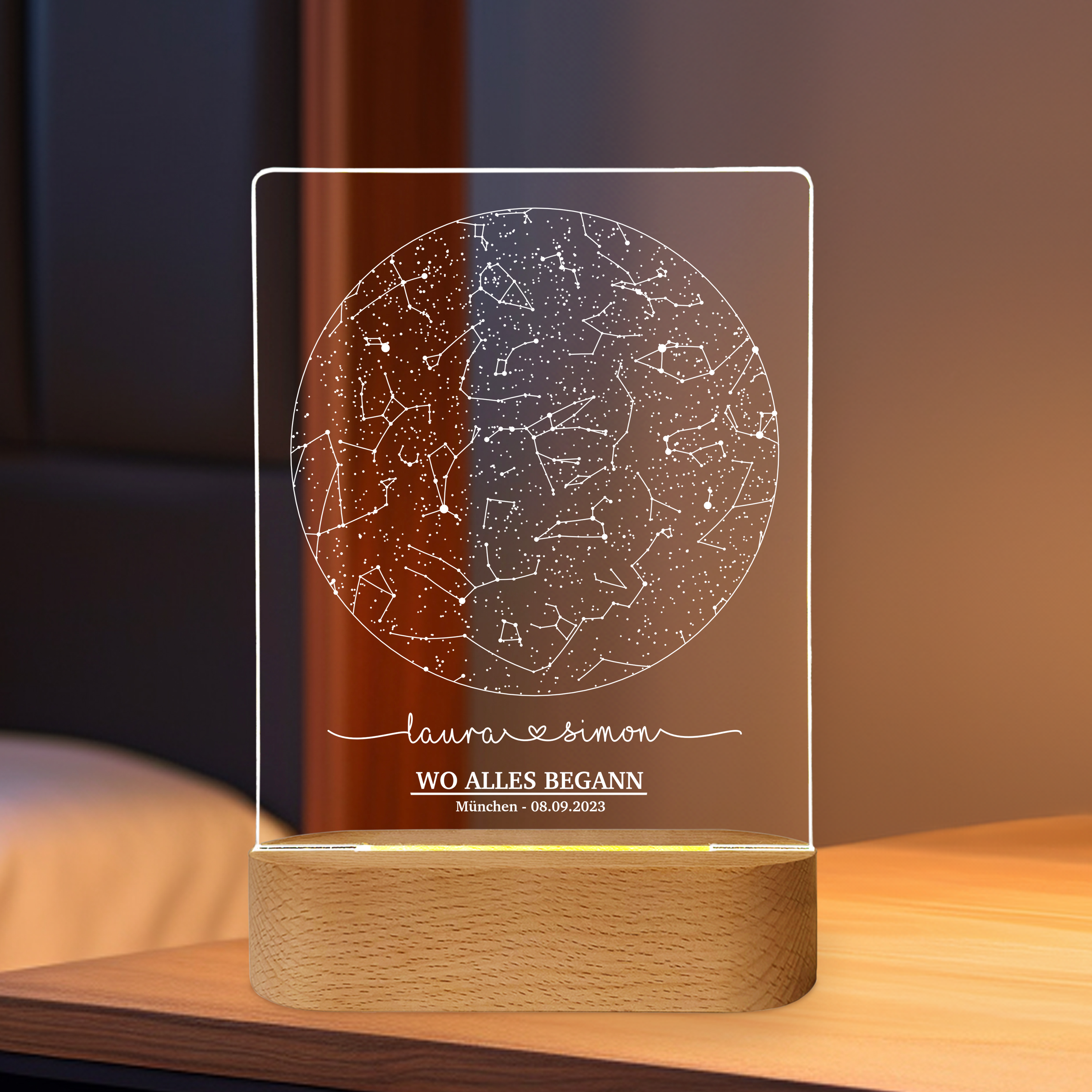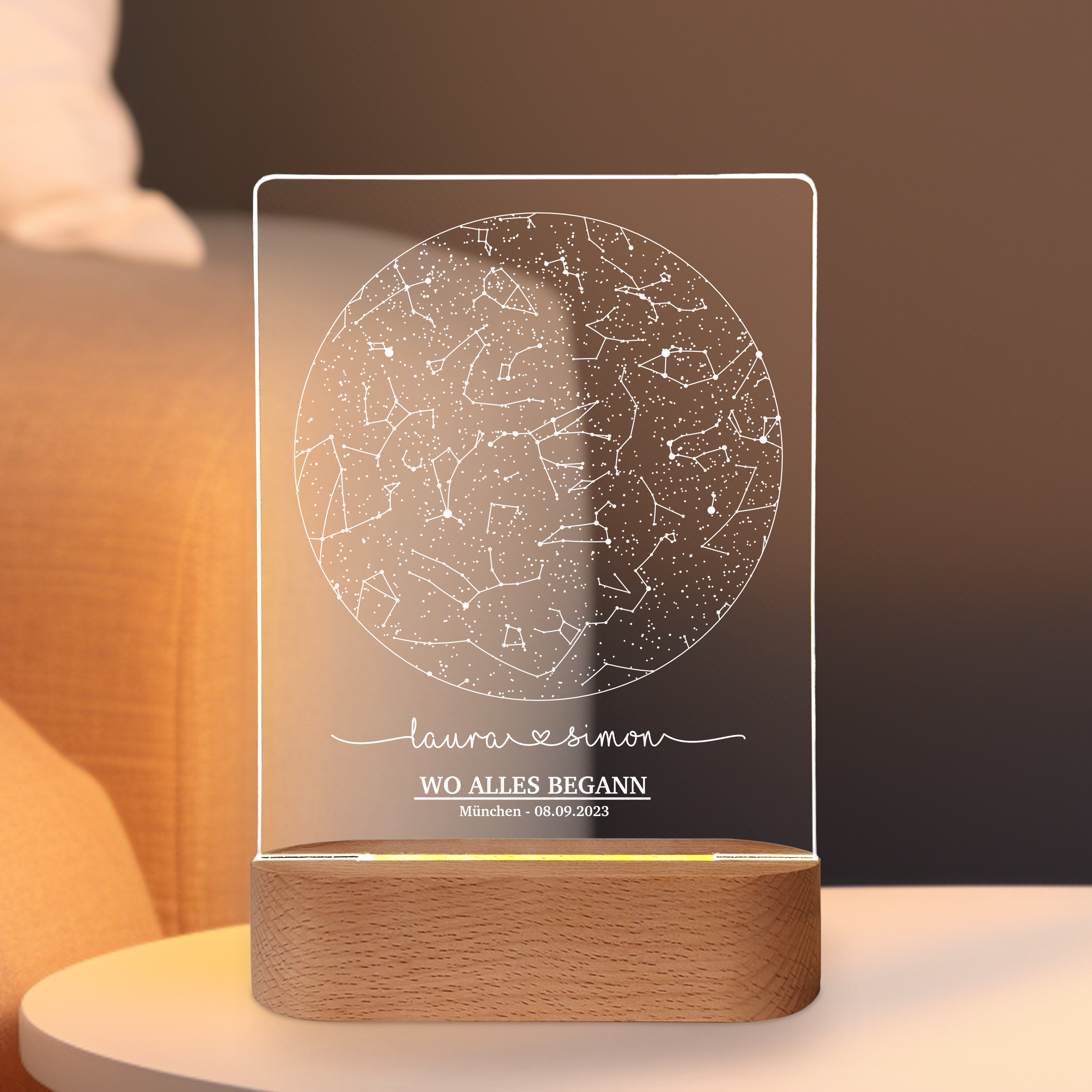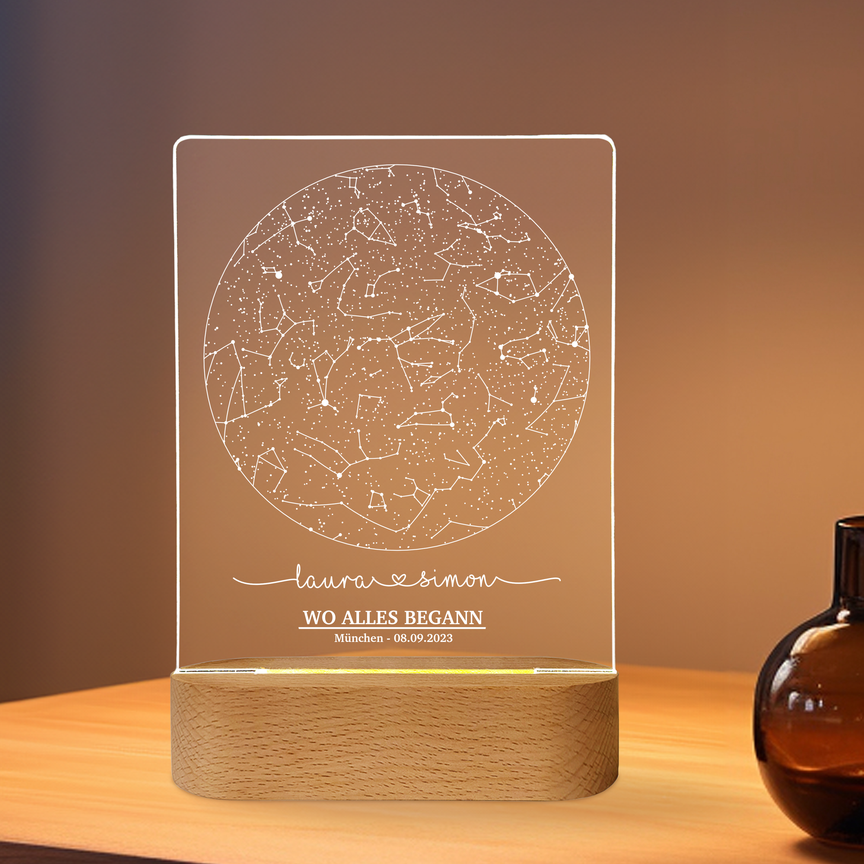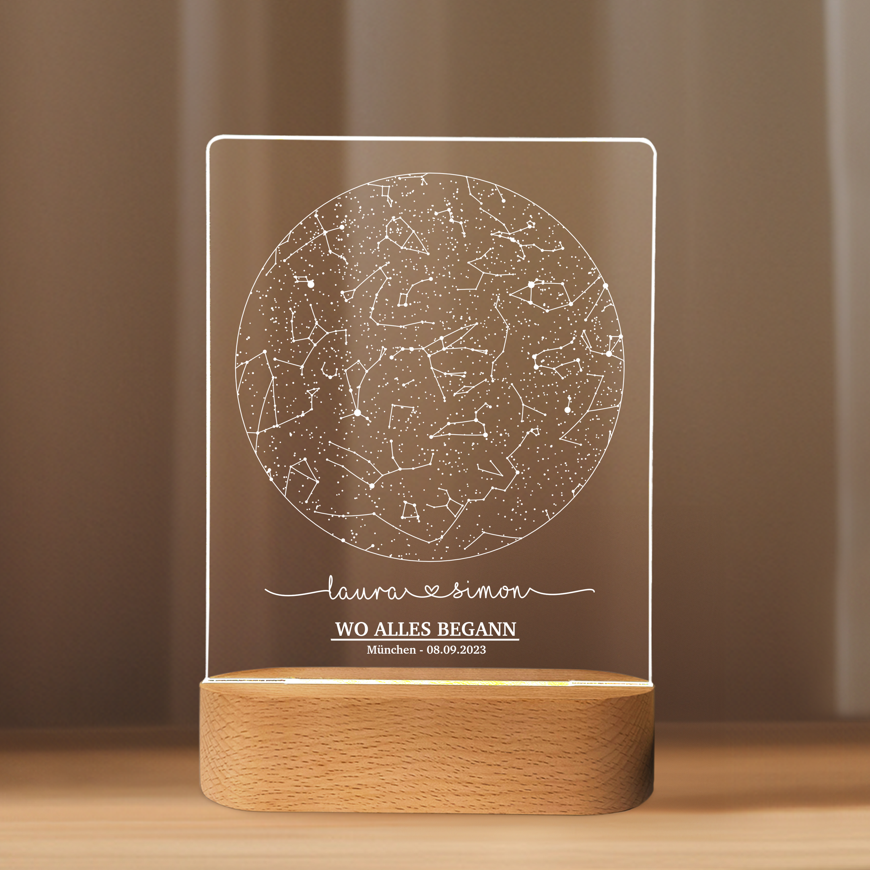 Liebe unter dem Sternenhimmel - Personalisiertes Liebeslicht mit Namen, Ort und Datum