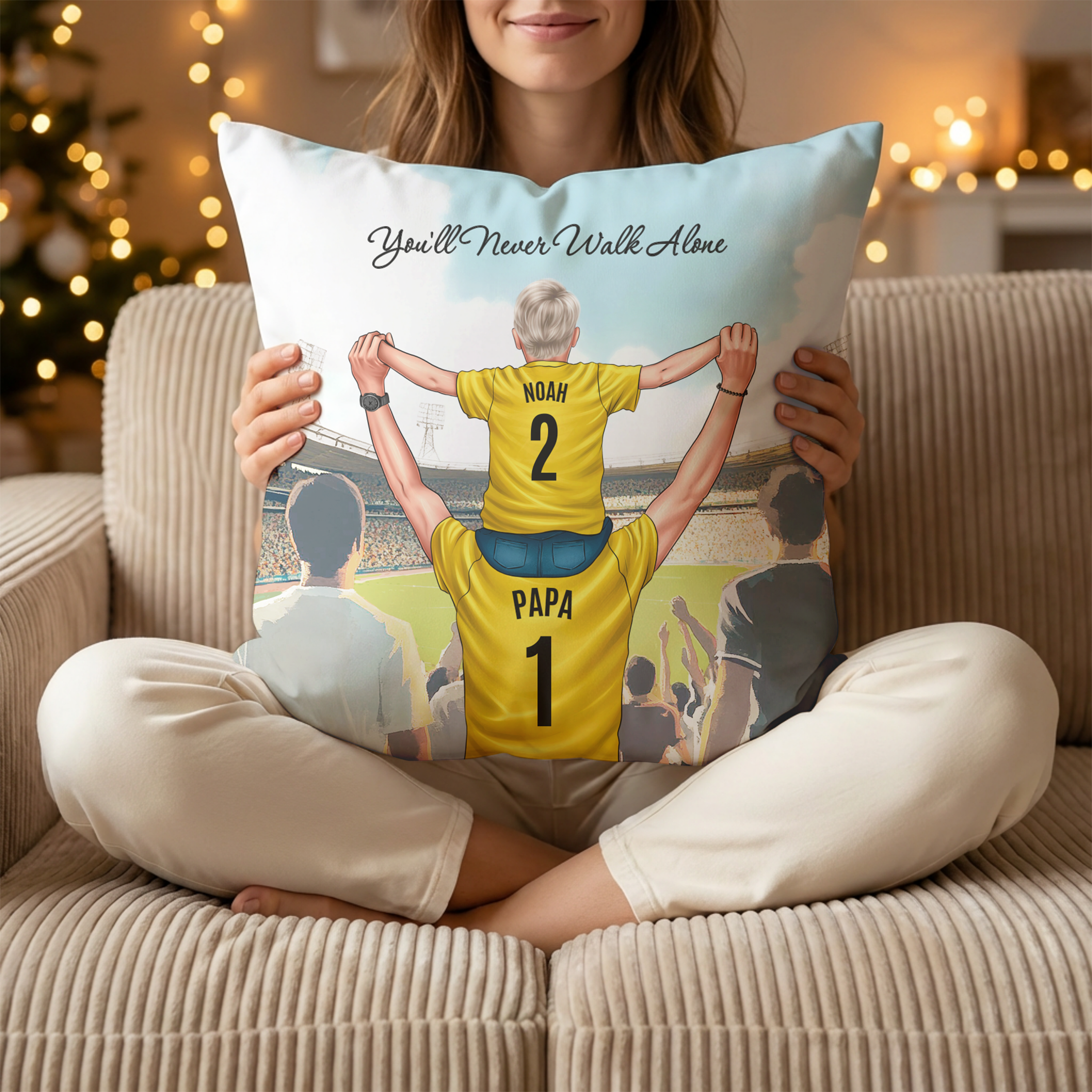 Papa und Kind beim Fußball im Stadion - Personalisiertes Kuschelkissen