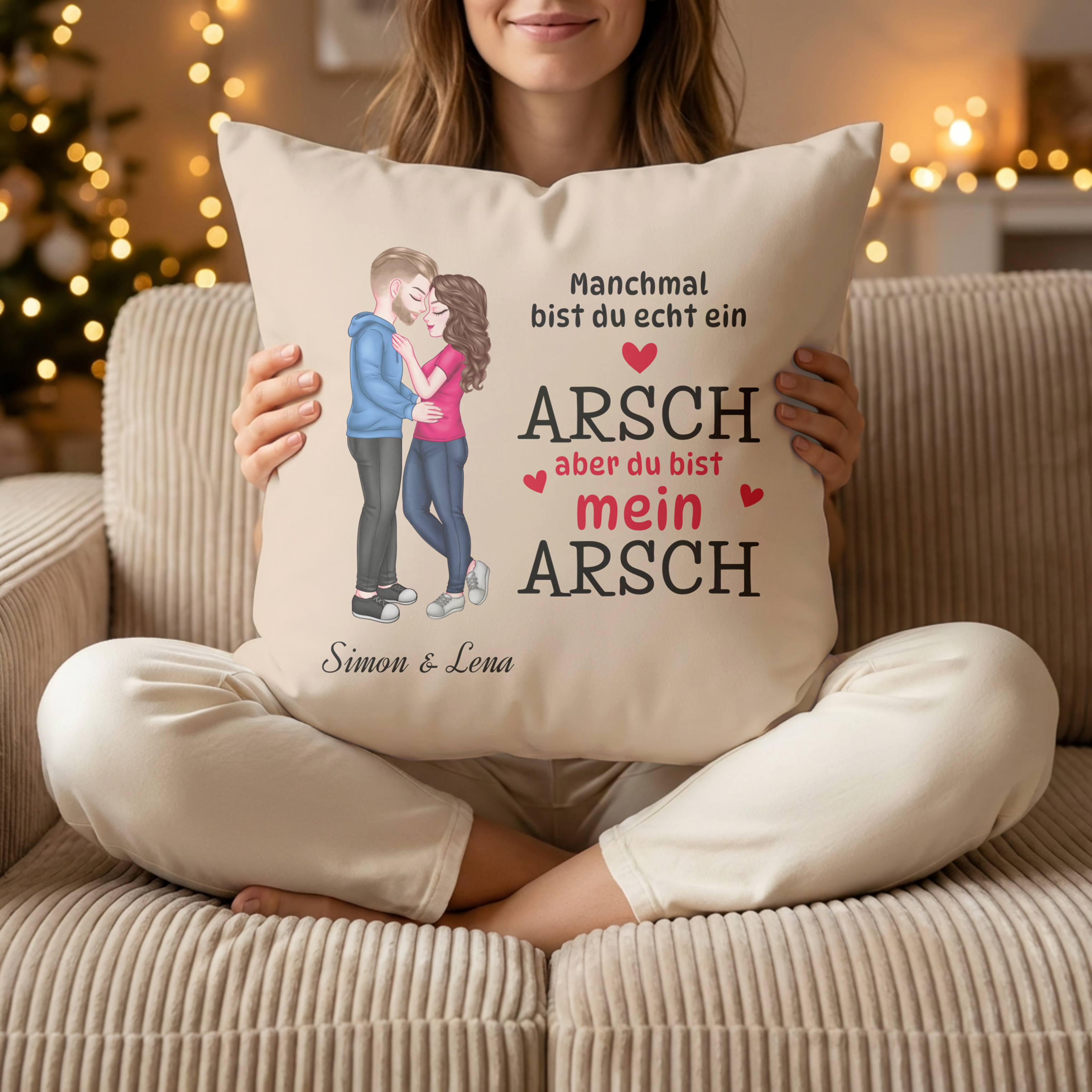 Du bist mein Arsch - Personalisiertes Kissen für Paare in Beige