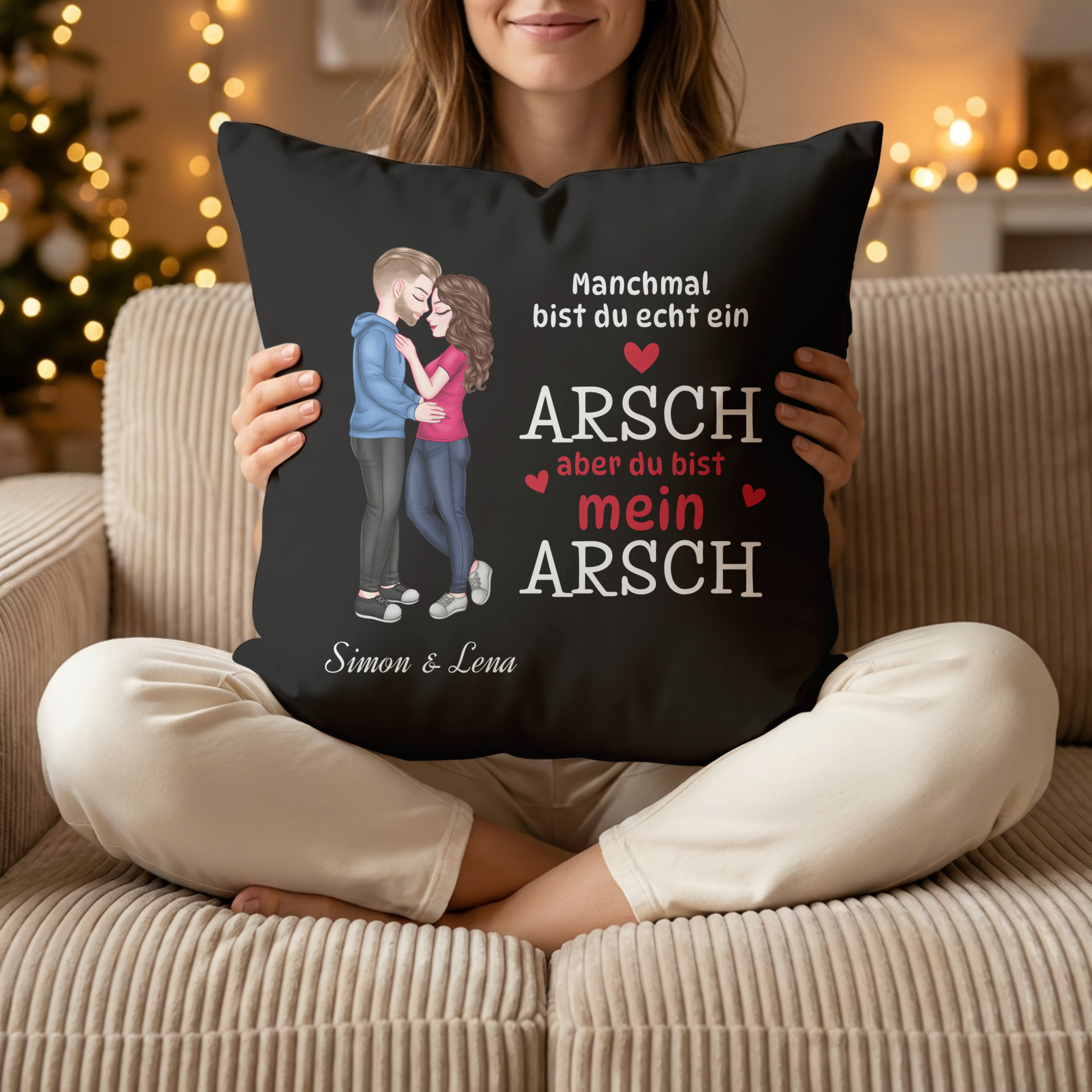 Du bist mein Arsch - Personalisiertes Kissen für Paare in Schwarz