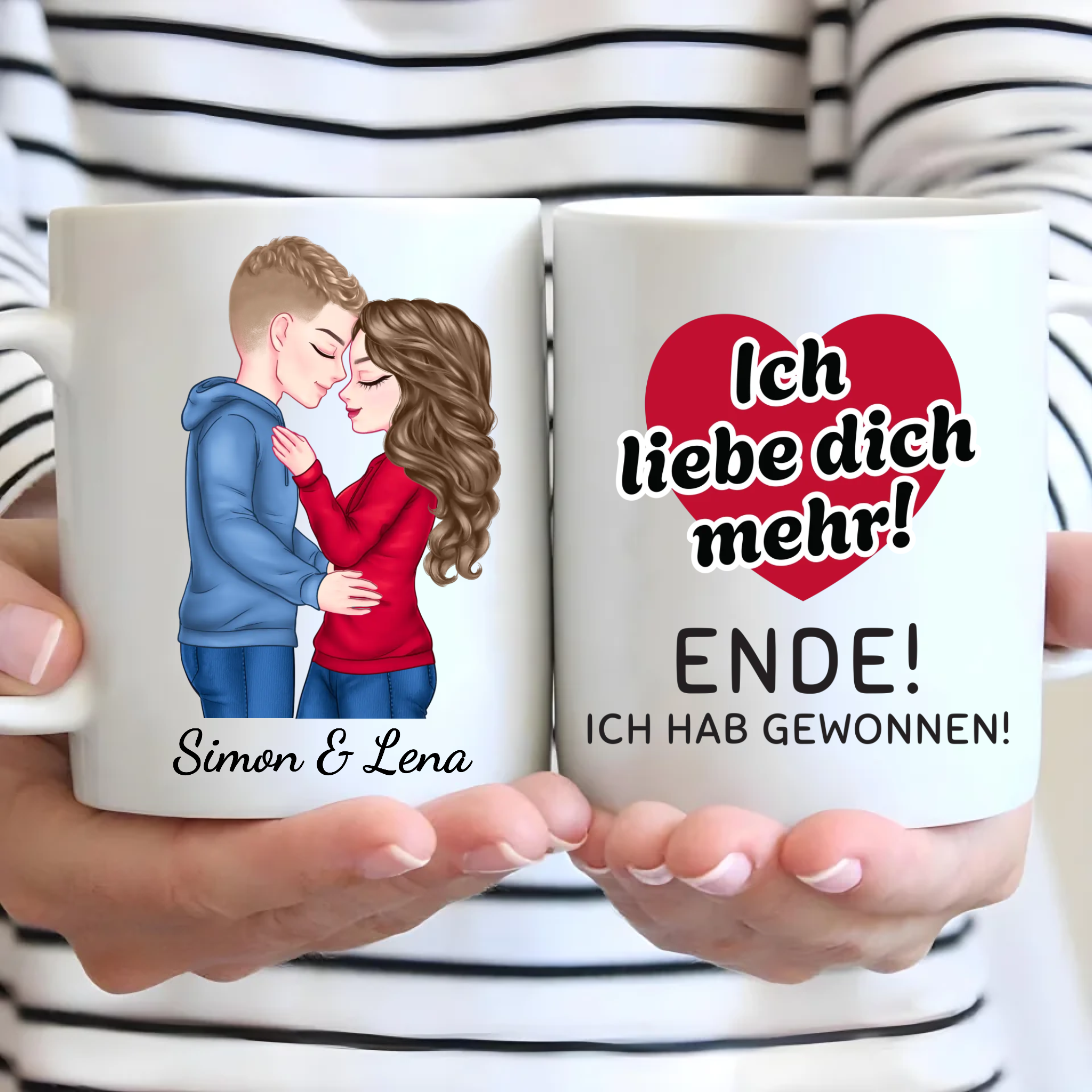 Ich liebe dich mehr - Personalisierte Tasse für Paare