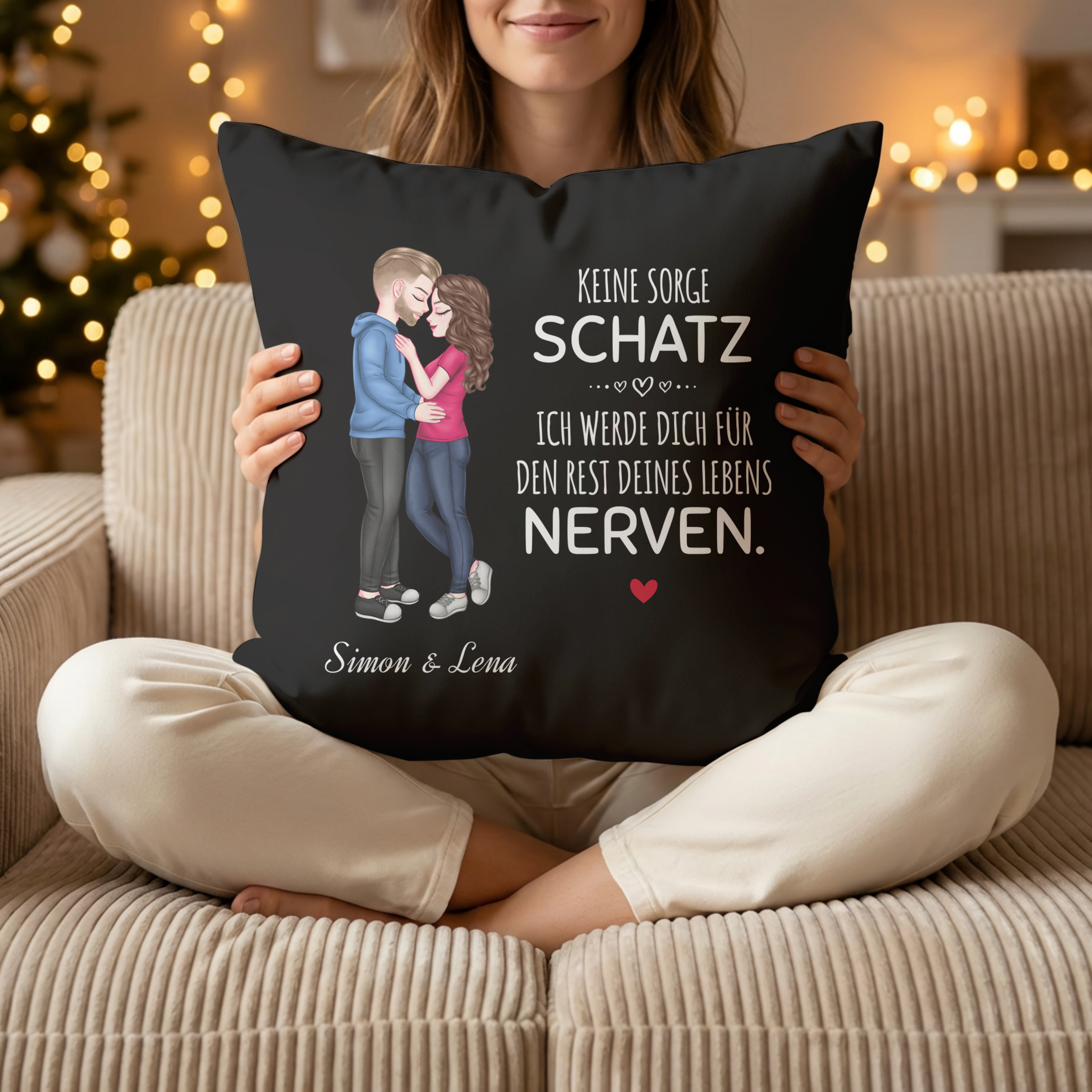 Keine Sorge Schatz - Personalisiertes Kissen für Paare in Schwarz