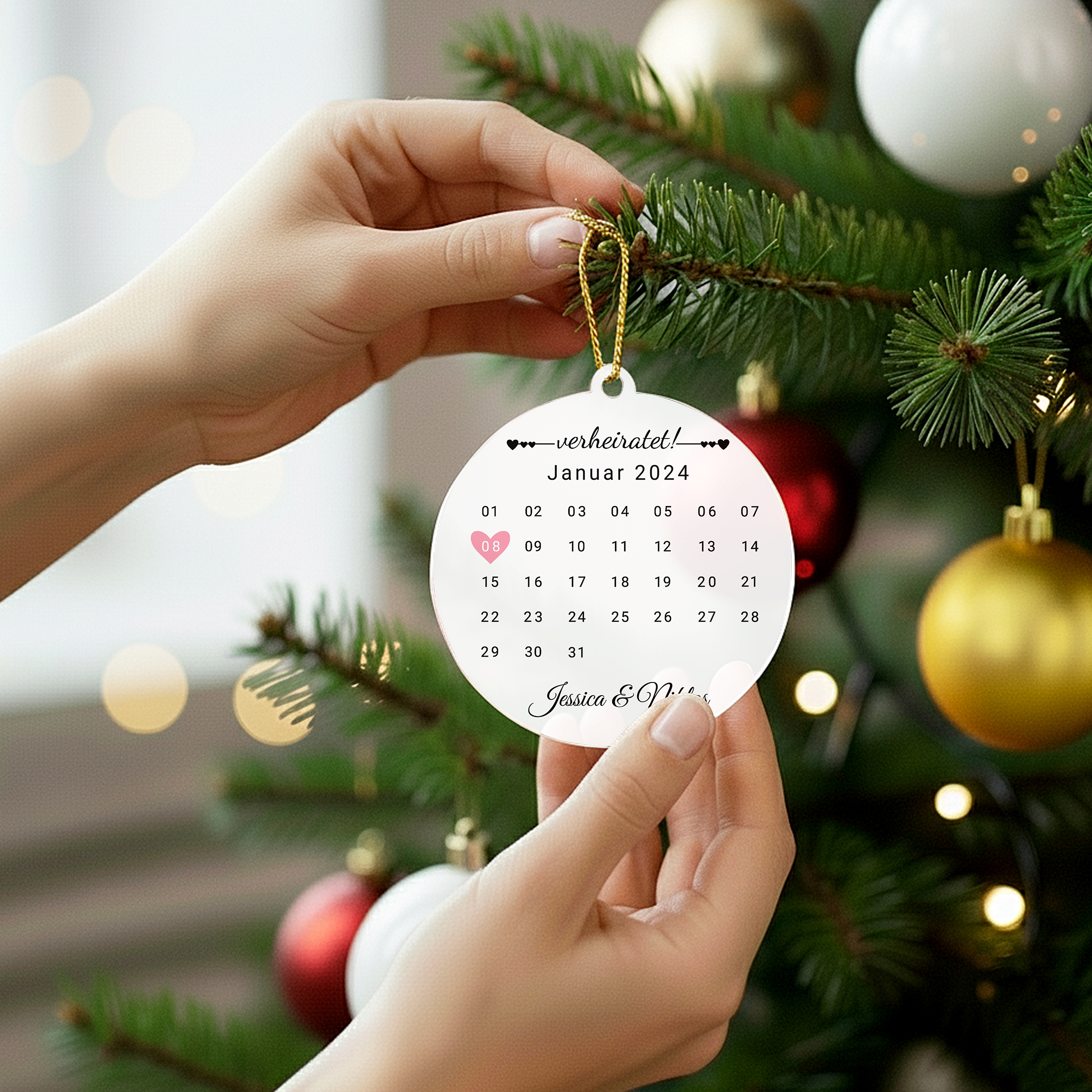 Hochzeitsdatum mit Kalenderblatt - Personalisierter Christbaumschmuck