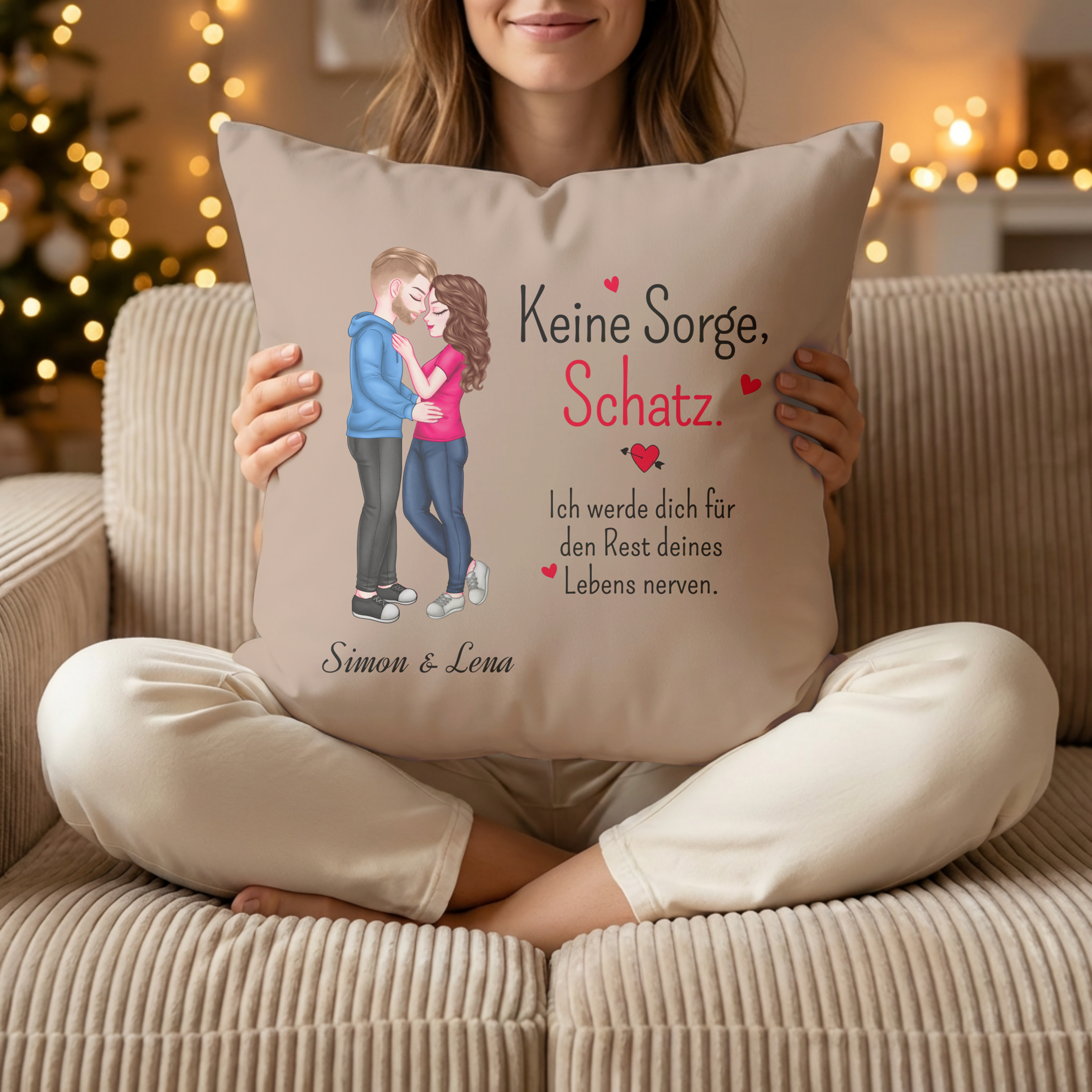 Keine Sorge Schatz - Personalisiertes Kissen für Paare in Beige