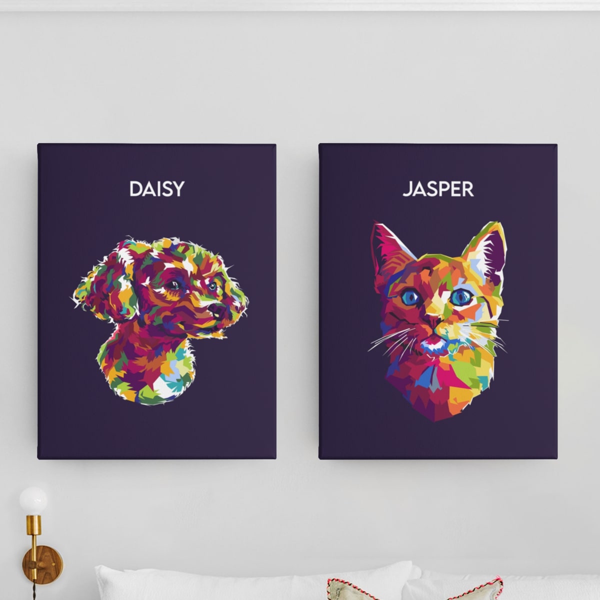 Das wird der neue Hingucker in deinem Wohnzimmer, Schlafzimmer oder wo immer du möchtest: Dein Liebling auf Leinwand, Acrylglas oder Poster! Unsere Künstler verwandeln deinen tierischen Freund in ein Portrait, das Kunstwerk drucken wir für dich nach Galerie-Standard.