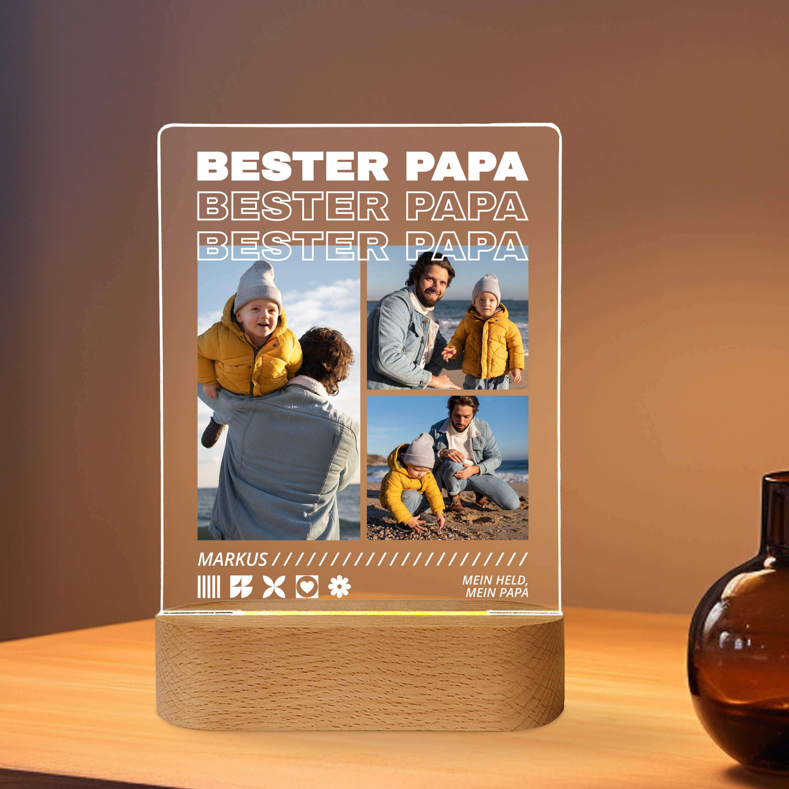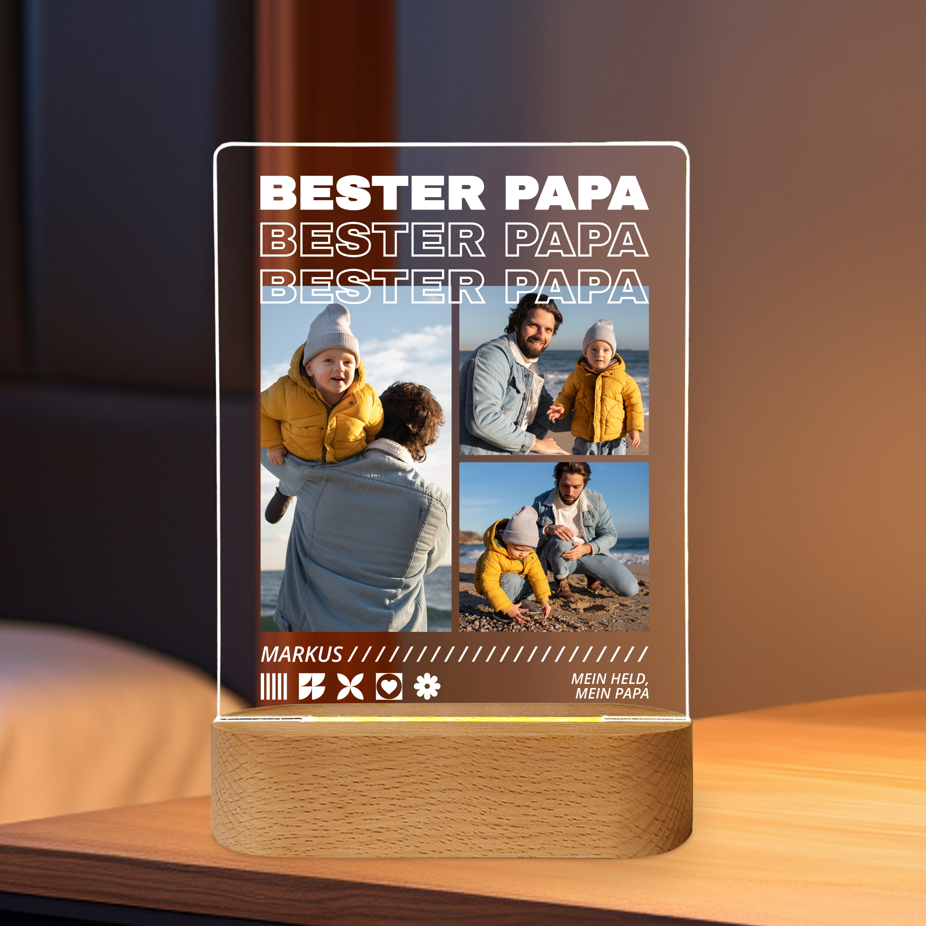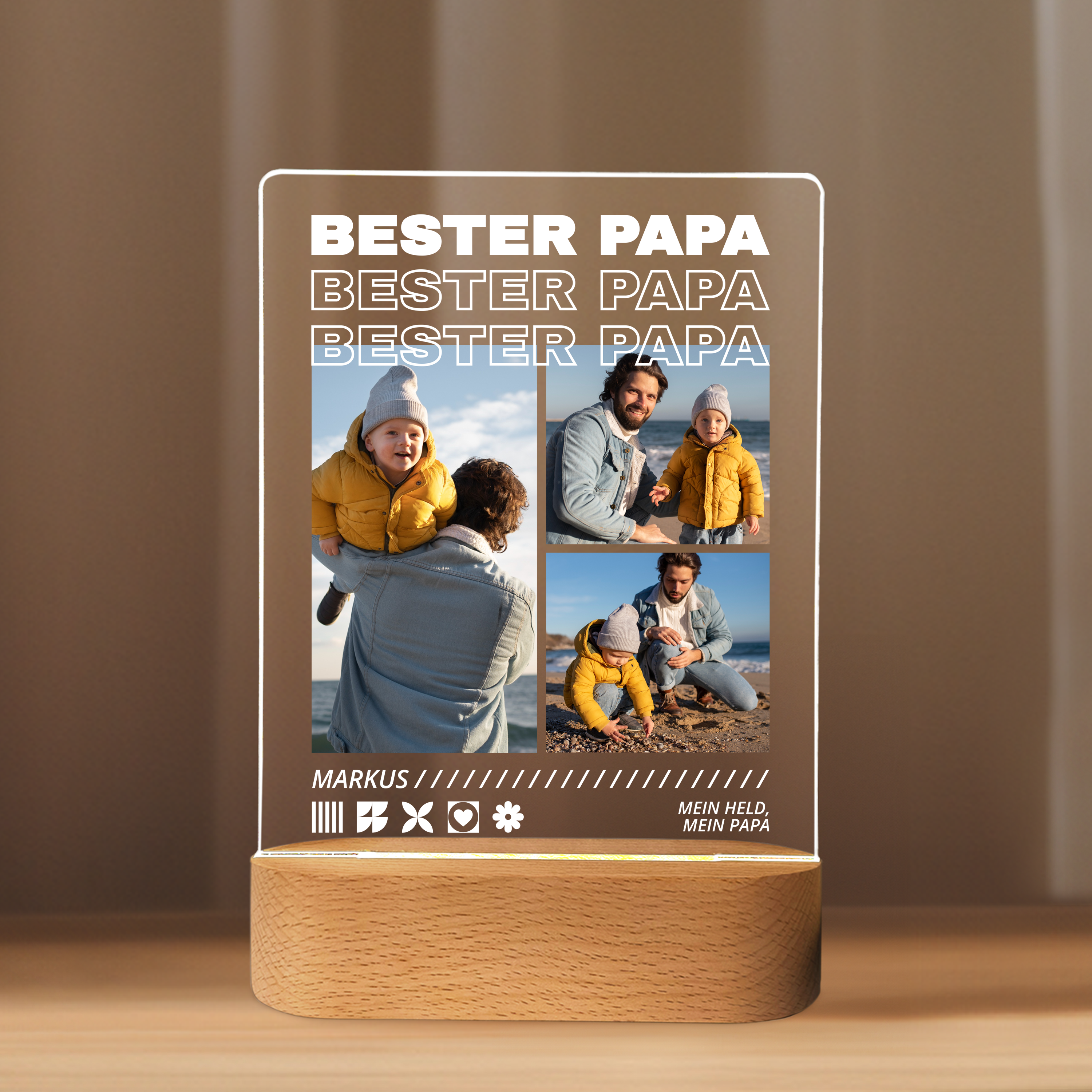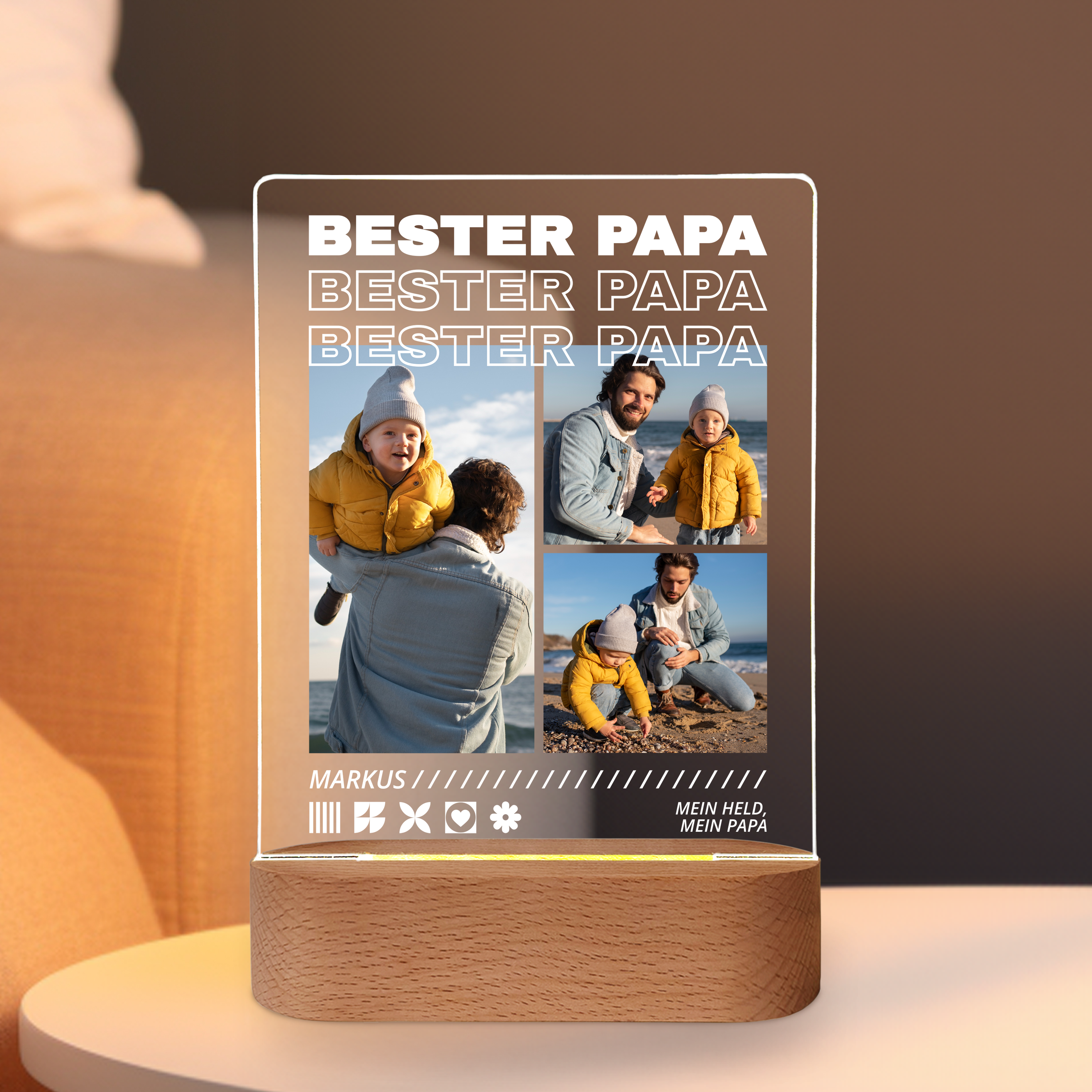 Bester Papa - Personalisiertes Acrylglas mit Licht für Papa