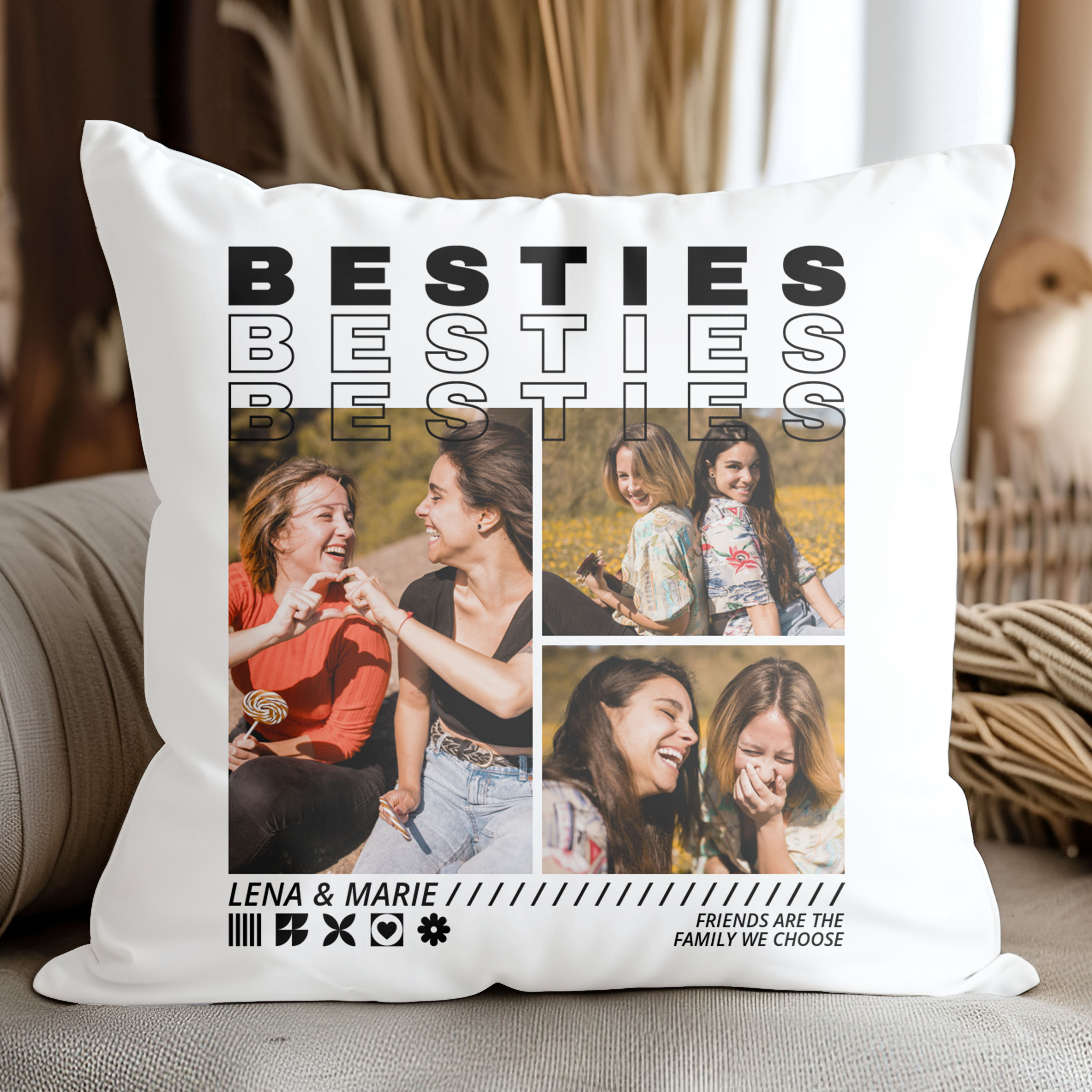 Besties - Personalisiertes Kuschelkissen mit Namen und Fotos für beste Freundinnen
