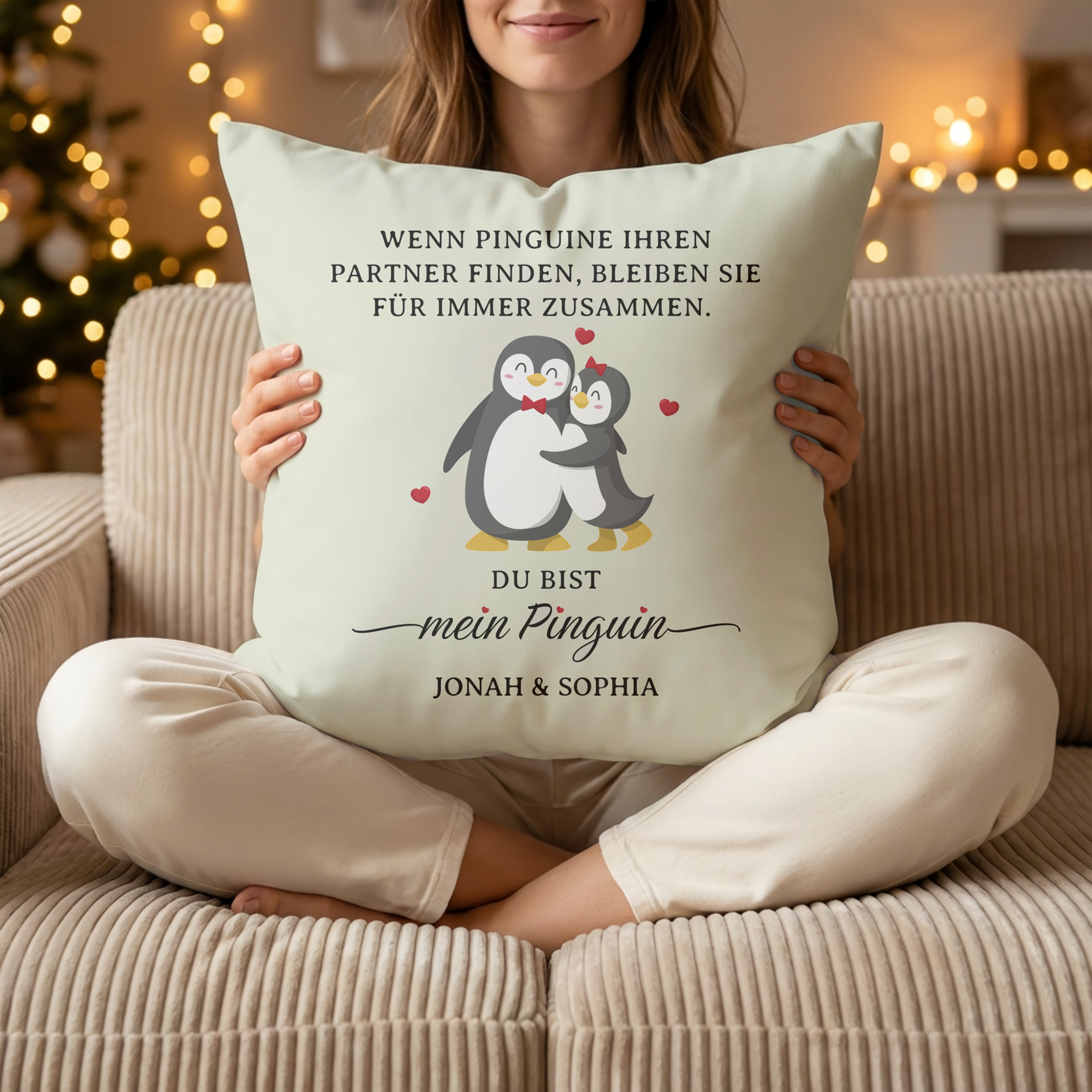 Mein Pinguin - Personalisiertes Kuschelkissen mit Namen für Paare