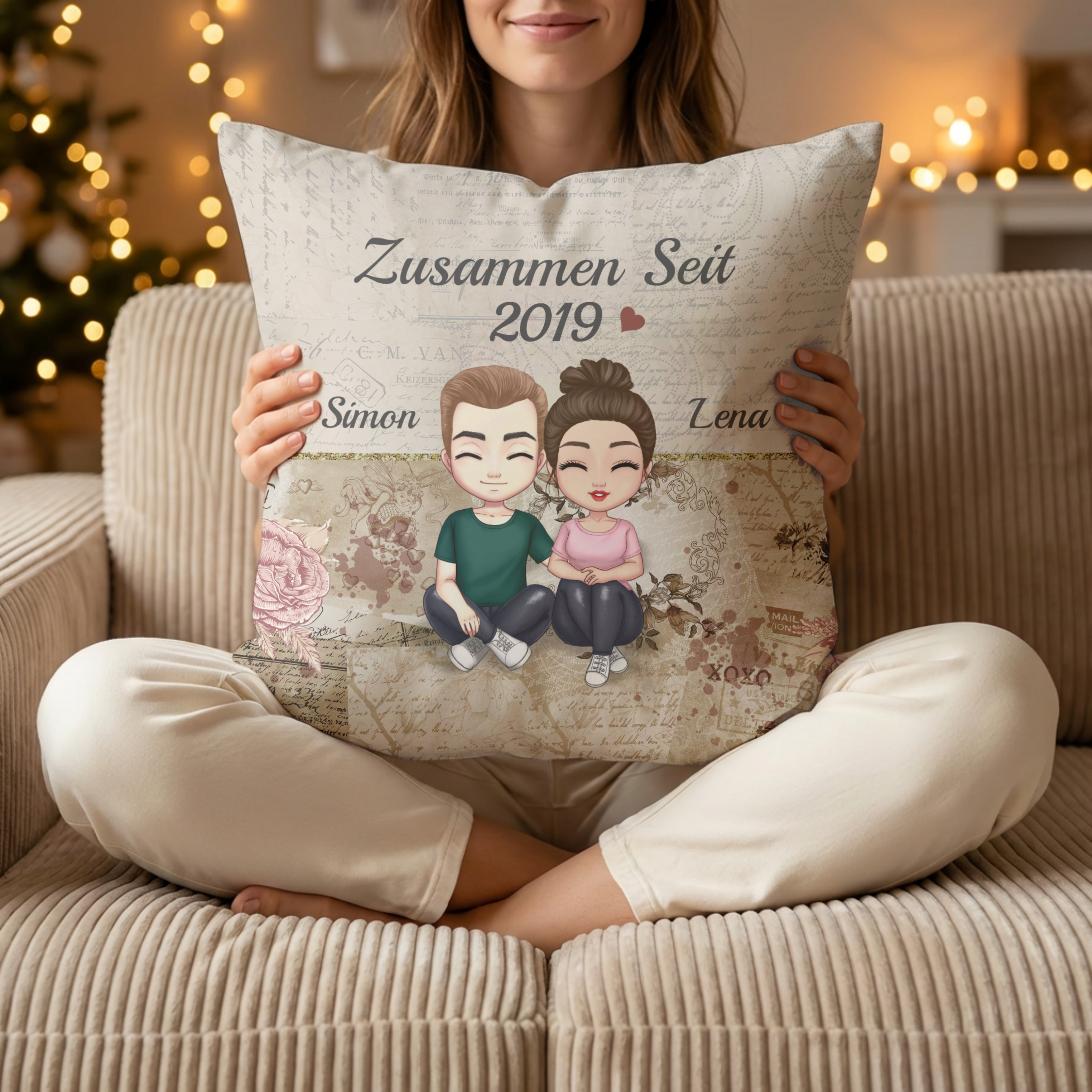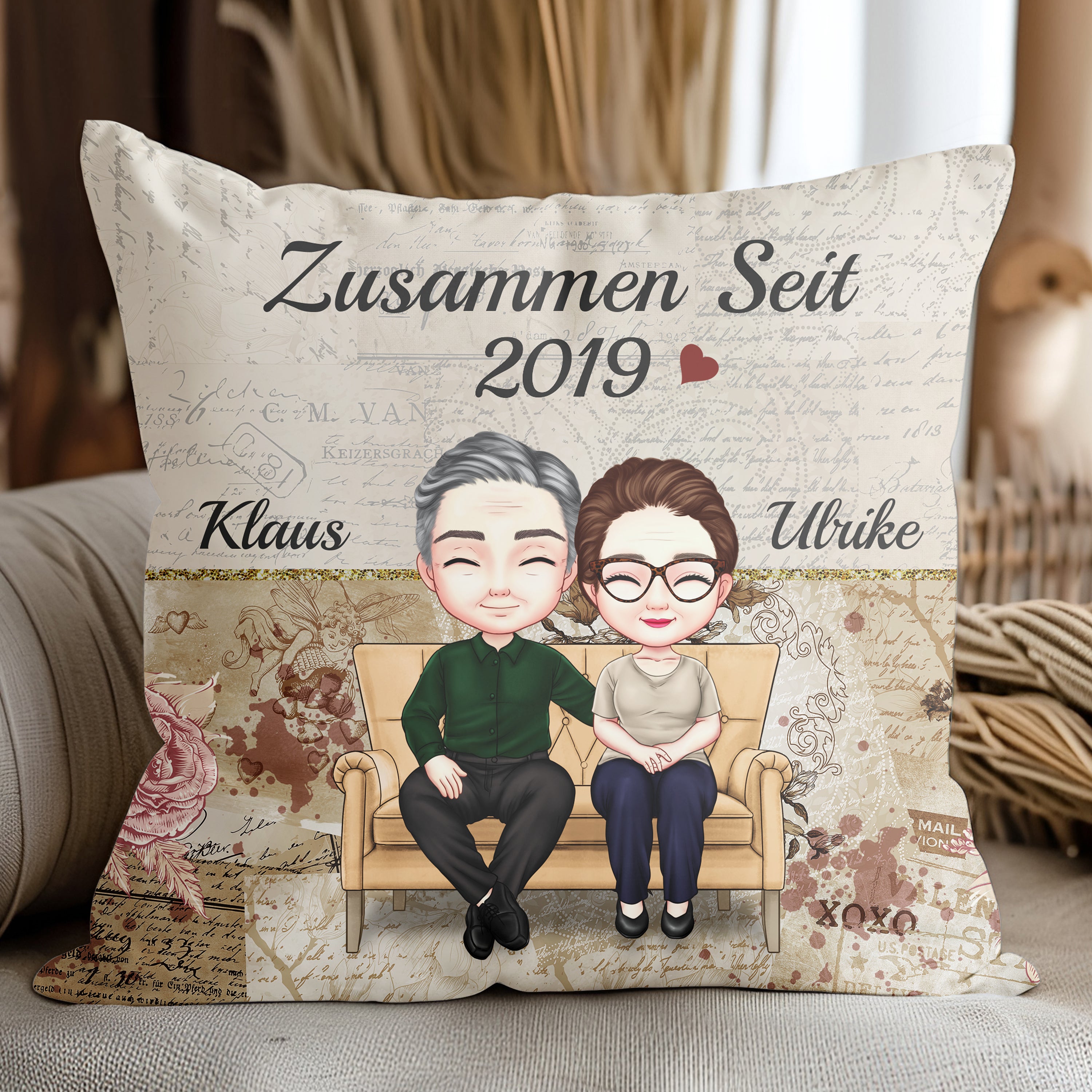Zusammen seit Jahren Kuschelkissen für Paare - Personalisiertes Kissen
