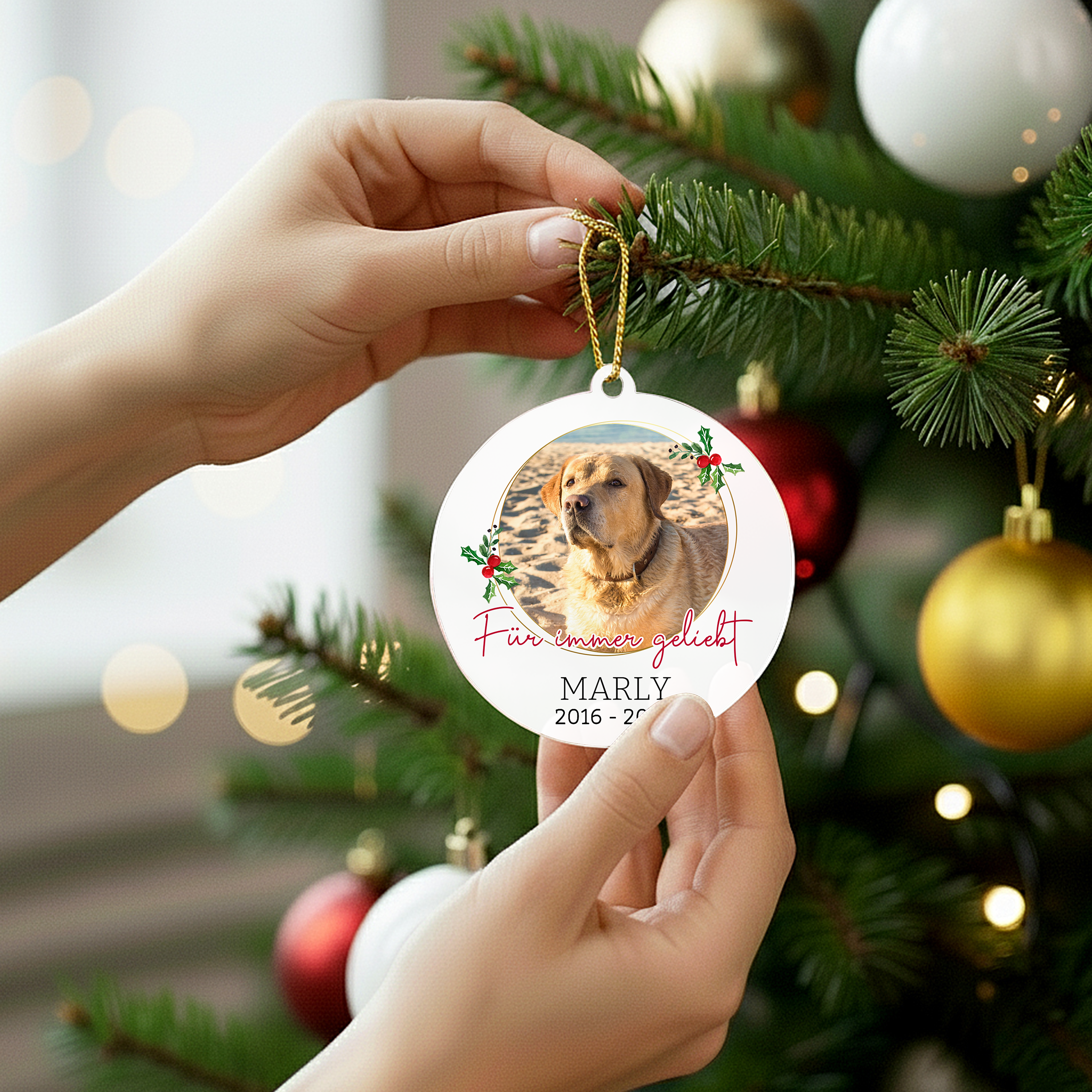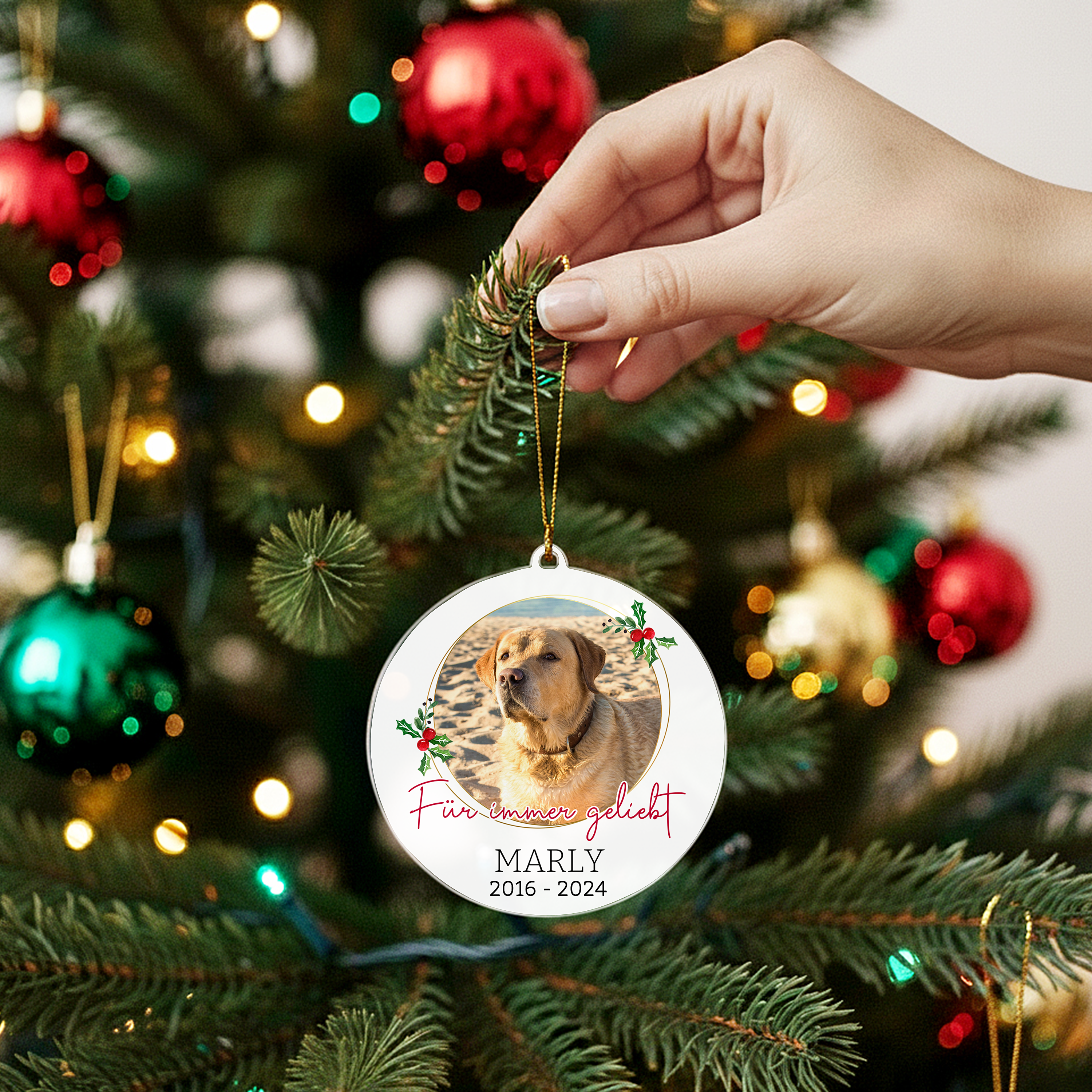 Liebevolle Haustier Erinnerung mit Foto - Personalisierter Christbaumschmuck