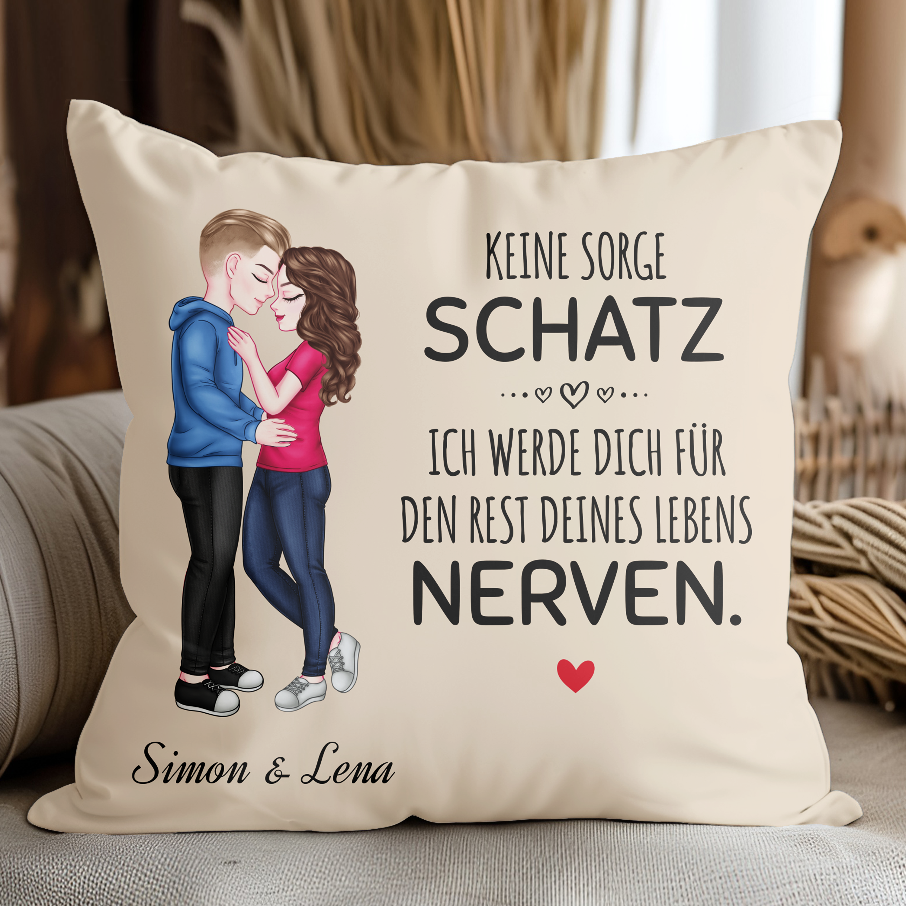 Keine Sorge Schatz - Personalisiertes Kissen für Paare in Beige